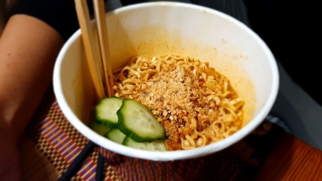 Zurück am Hüttchen gibt es einen Cider und zu Essen Fertignudeln und Brotzeit.