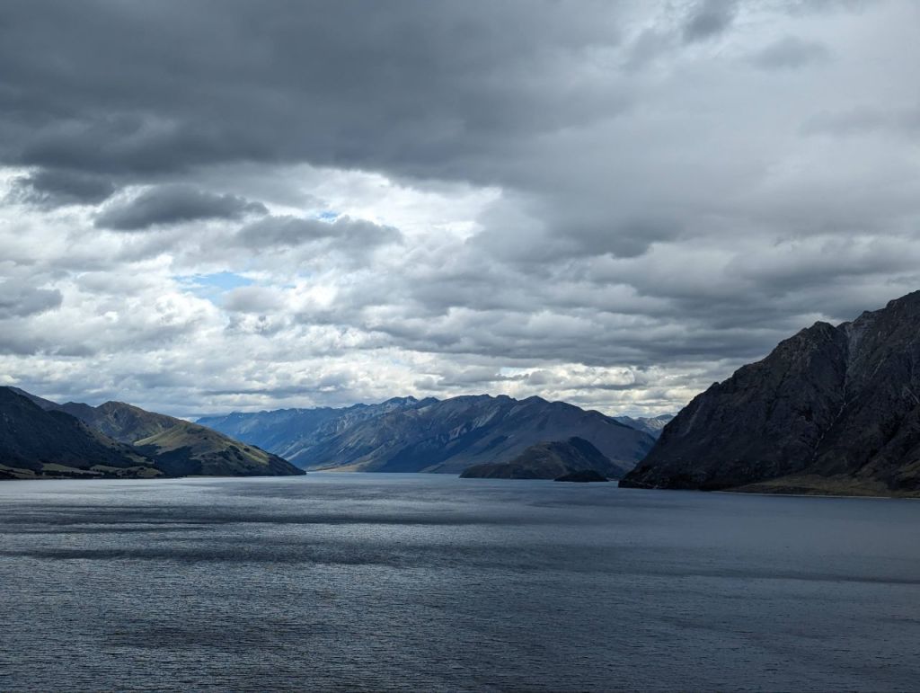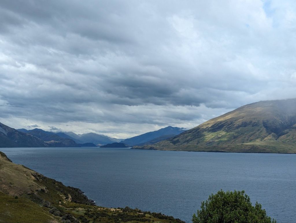 Zweiter Stopp, gleich ums Eck: Lake Wanaka Lookout. Hier ändert sich direkt das Klima. Sonne und Wärme weichen dem gewohnten windig kühlen Wetter.