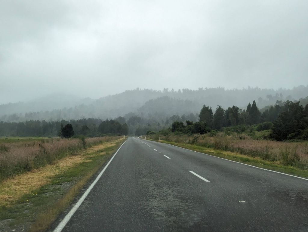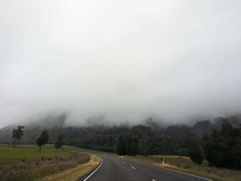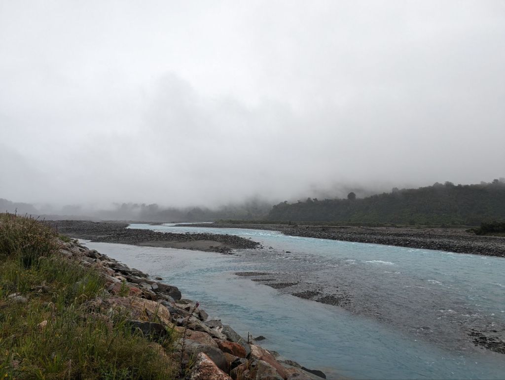 Wir entscheiden uns daher dagegen den Weg zum Fox Glacier Lookout zu laufen. Groß ist der eh nicht mehr. Um die Aussicht auf das umliegende Hochgebirge ist es trotzdem schade.