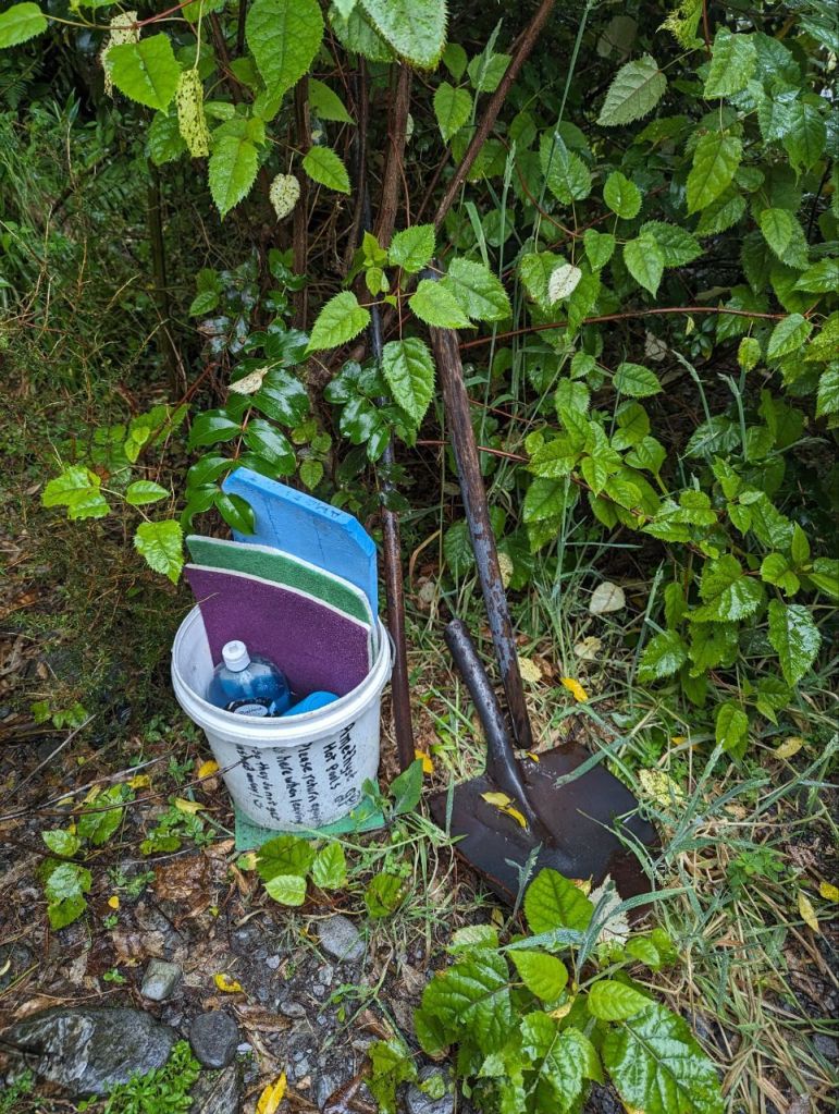 Wir erreichen den Weg, nach einer Weile kommen wir an den Wanderwegweiser. Irgendwer hat darauf geschrieben: „To Hot Pools? Wrong direction.“ Na immerhin sind wir grundsätzlich richtig.
