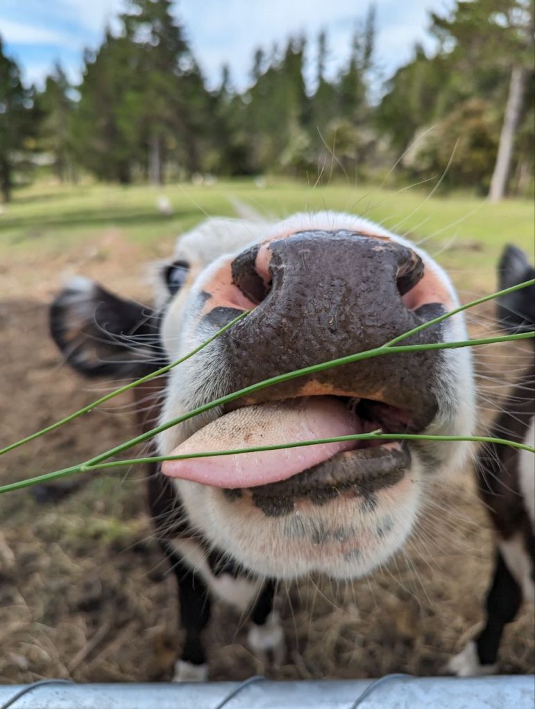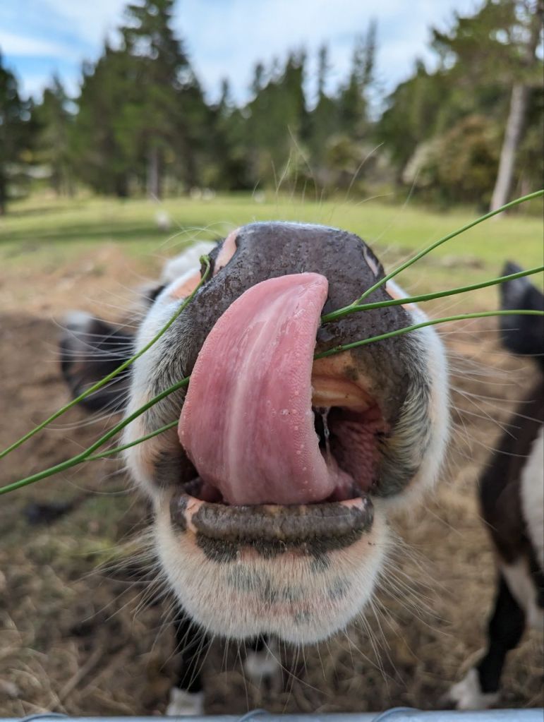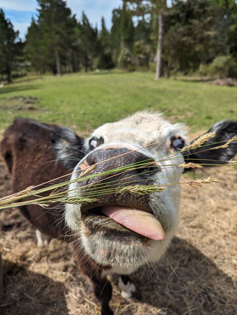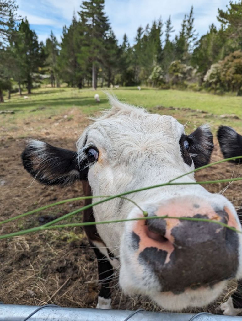 Unsere zwei Hauskühe sind so liebenswert, sie muhen immer nach uns und stupsen uns und wir geben ihnen ab und zu lecker saftiges Gras.