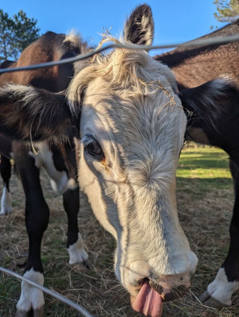 Natürlich haben die Kühe wieder in regelmäßigen Abständen nach Mira gerufen und wurden ein bisschen umsorgt. Mira hat die Zwei richtig ins Herz geschlossen.