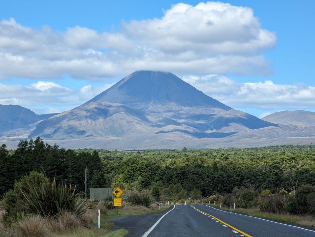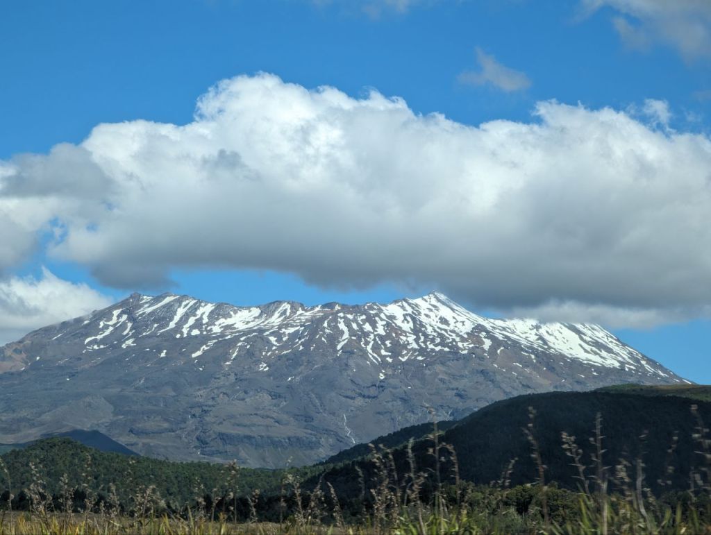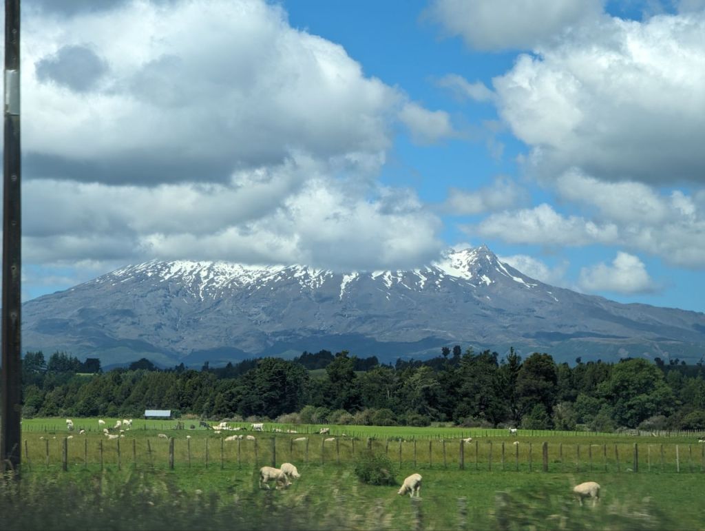 Auf der Fahrt haben wir zum ersten Mal tolle Blicke auf die Vulkane Mt Ruapehu und Mt Ngauruhoe (Schicksalsberg – Herr der Ringe).