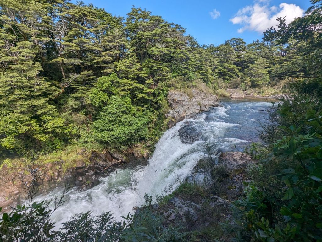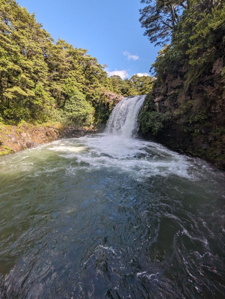 Die Tawhai Falls sind schön, aber gut voll. Der viele Regen hat den Fluss gut gefüllt.