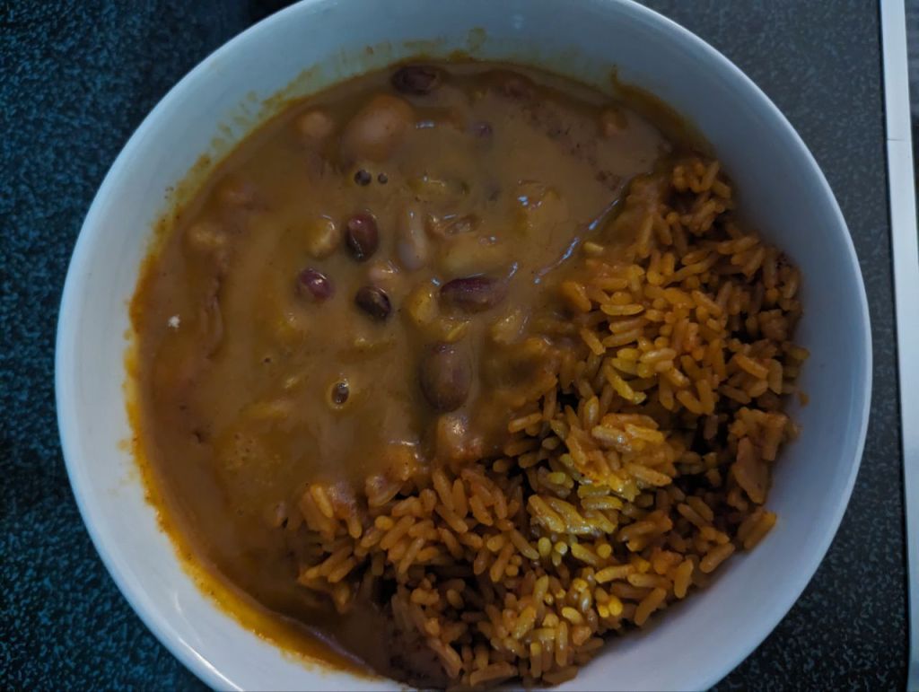Zu Essen gibt’s Curry und Reis.