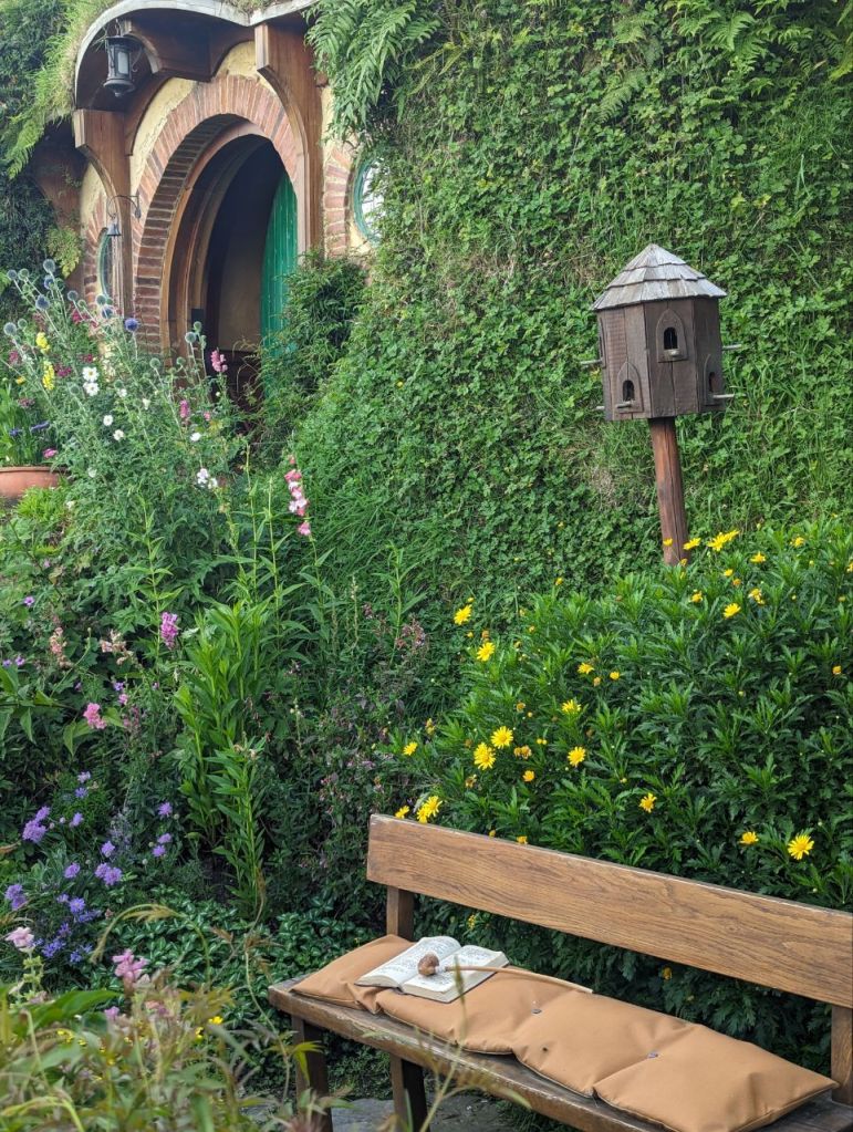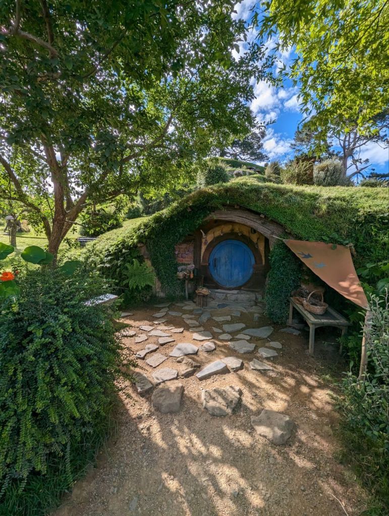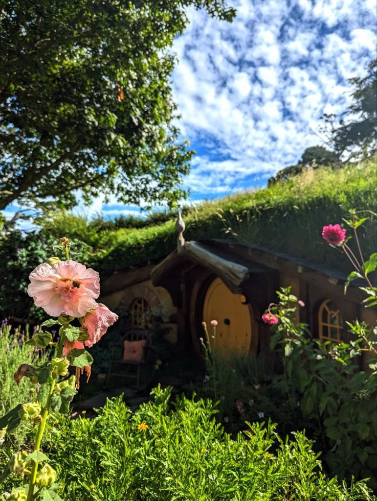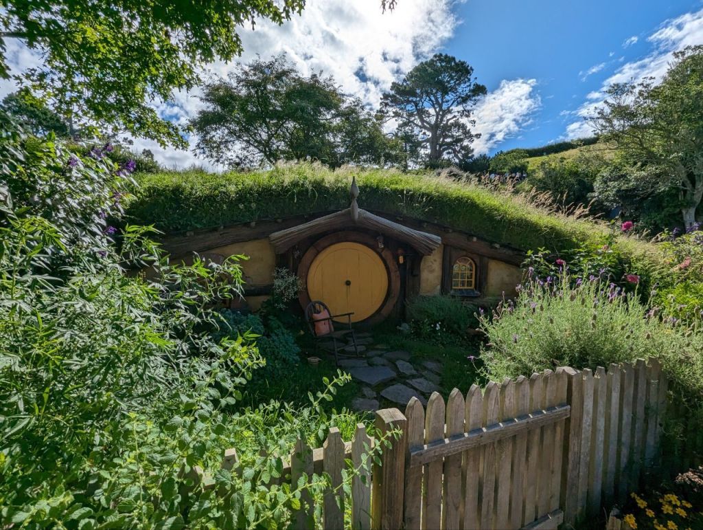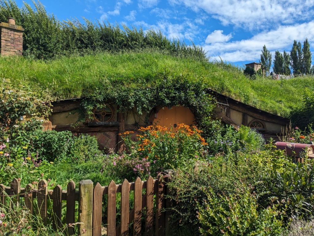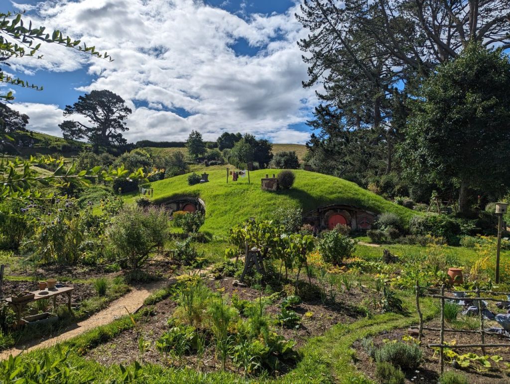 Die Führung führt uns an entzückenden, sehr detailliert und liebevoll gestalteten Hobbithöhlen entlang. Es ist ein wunderschöner und friedlicher Ort und durch die zehnminütige Taktung der Führungen wirkt es gar nicht überfüllt.