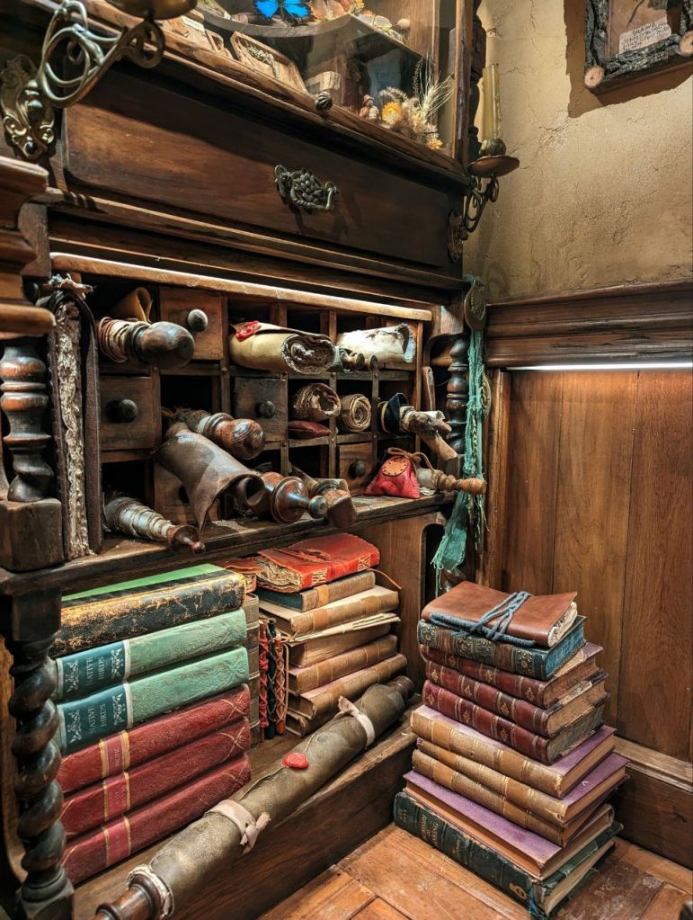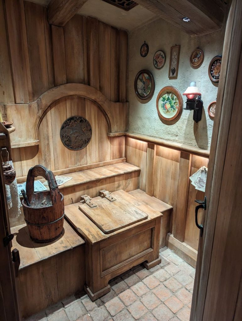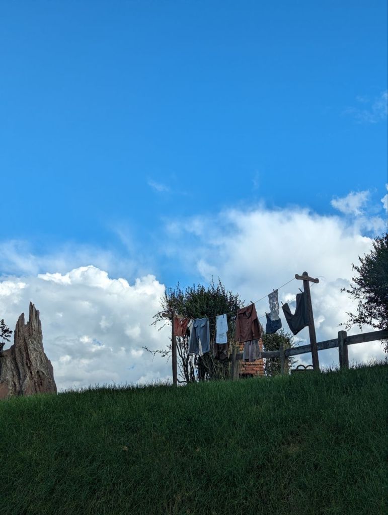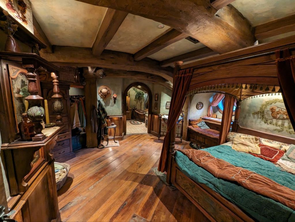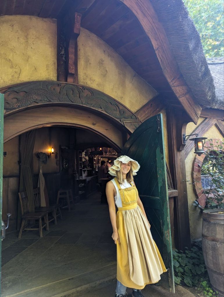 Gleich nebenan teilen wir uns noch mal in zwei Gruppen auf, denn es wartet eine Besonderheit auf uns. Im Dezember 2023 wurden zwei neue Hobbithöhlen fertiggestellt und zwar komplett mit Innenausbau und Einrichtung. Da haben wir Glück zu den Ersten zu gehören, die in eine Höhle können.