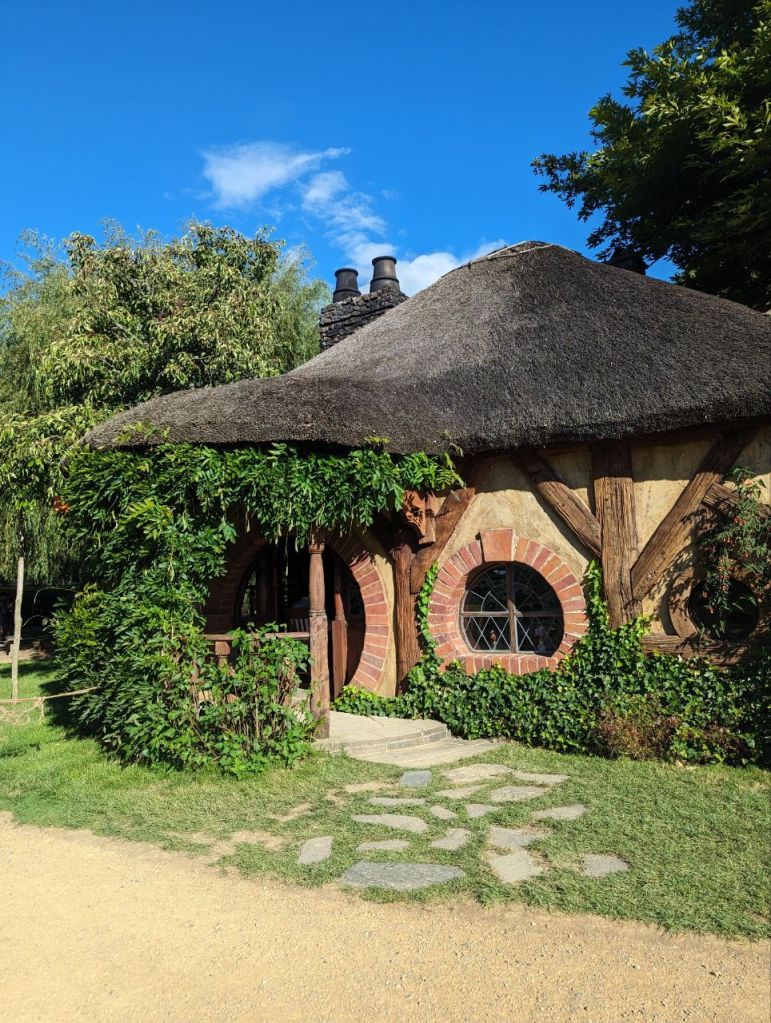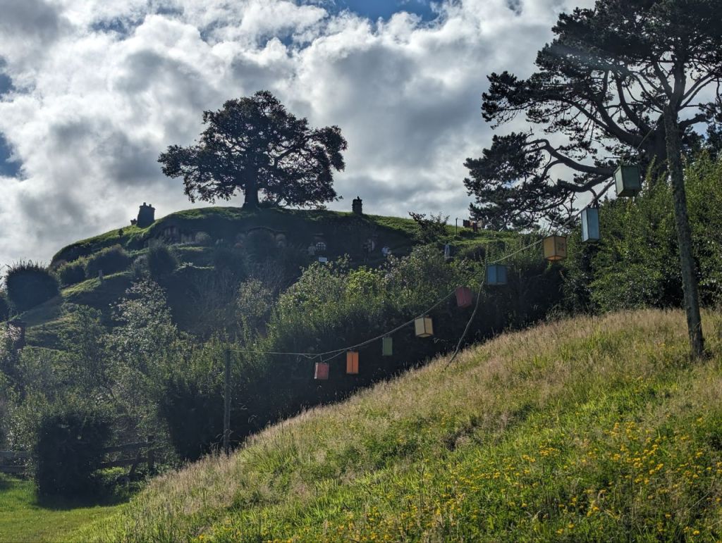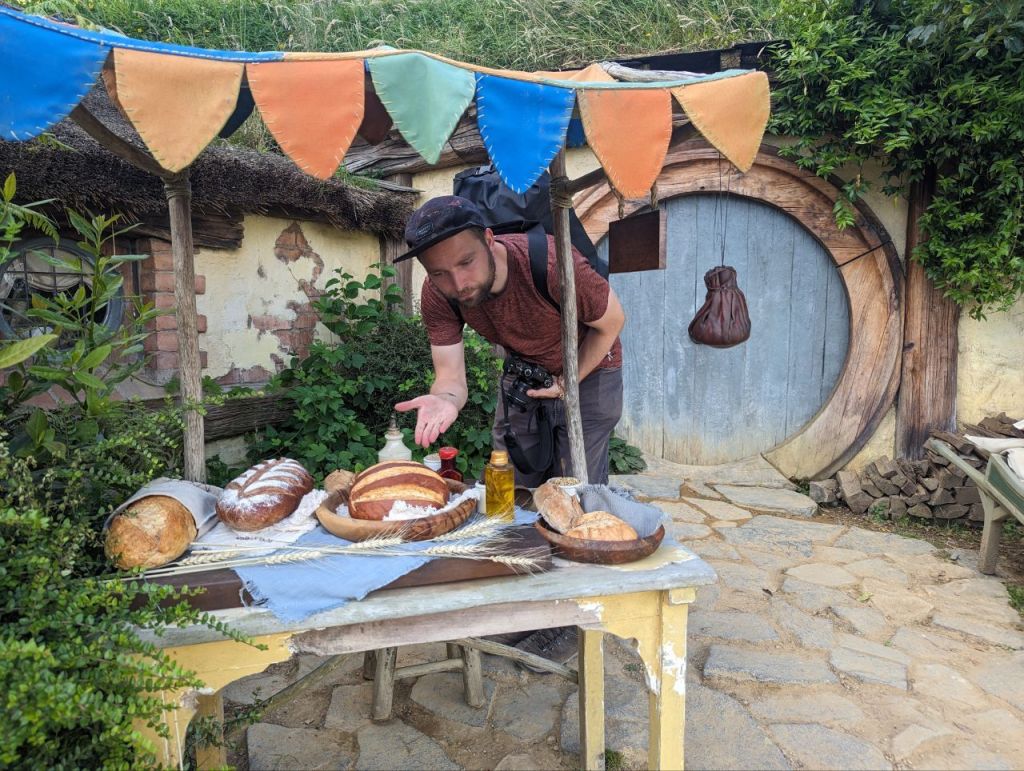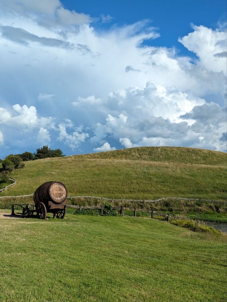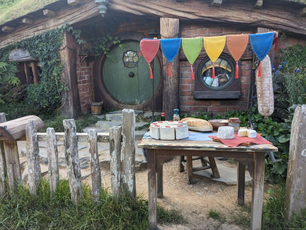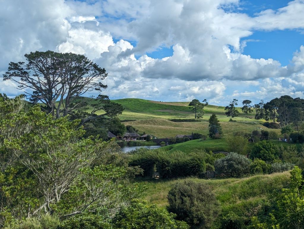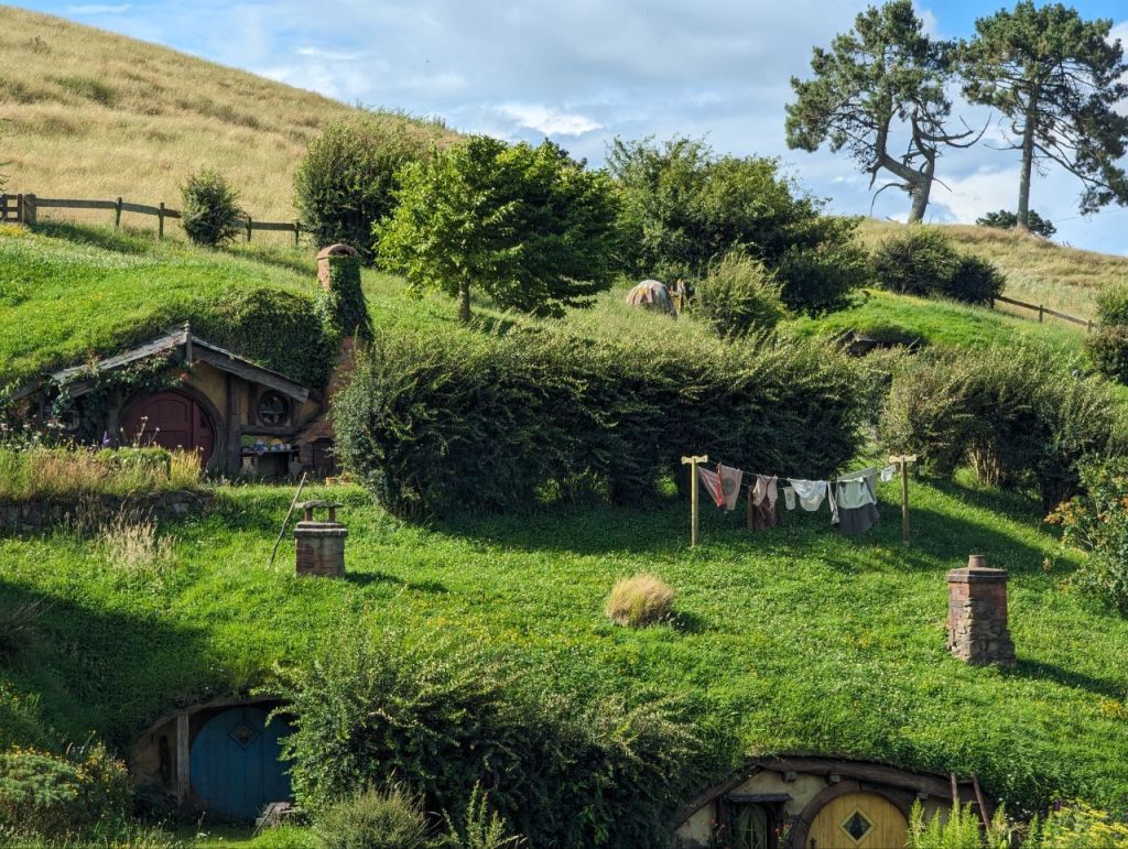 Wir erreichen Hobbingen (engl. Hobbiton), etwa 1,5 Stunden dauert die Führung, danach gibt’s Getränke in einer bekannten Hobbitgaststätte und nach 2,5 Stunden werden wir wieder zurück sein.