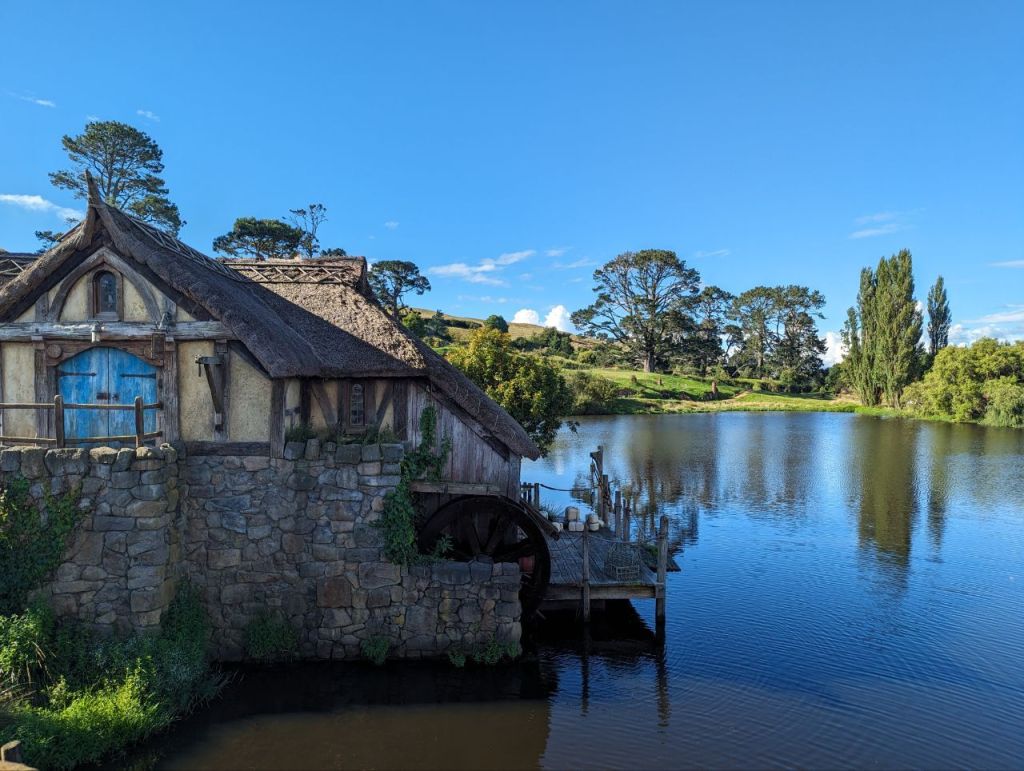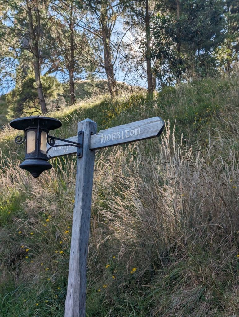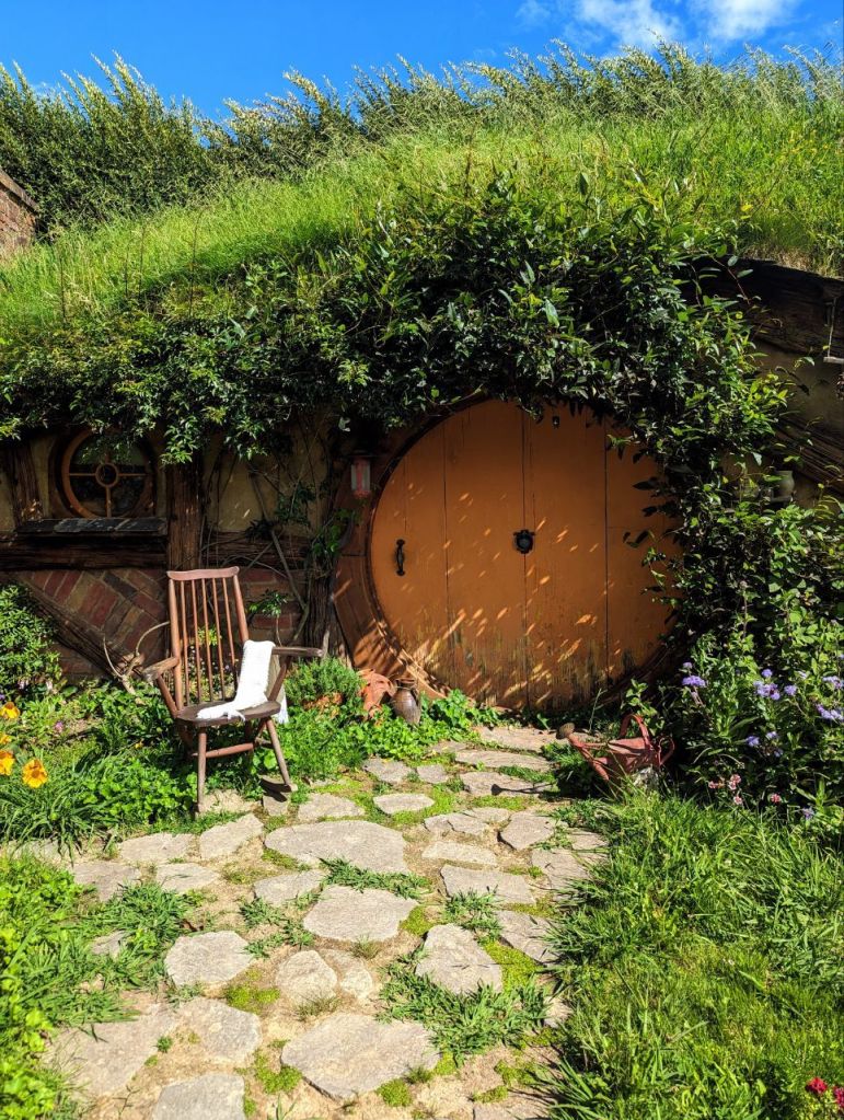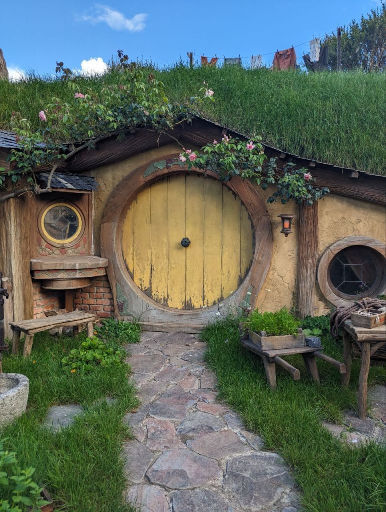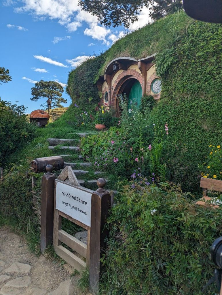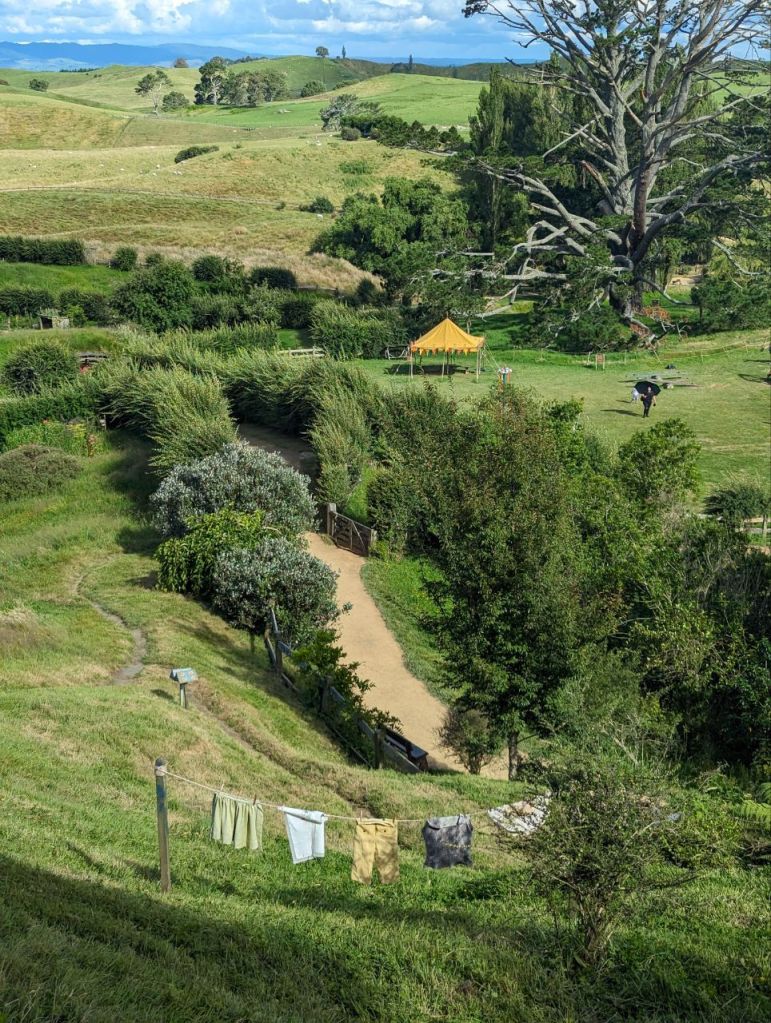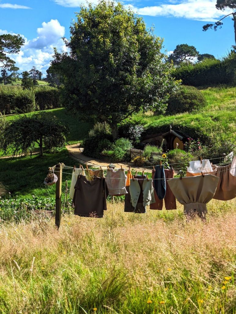 Wir erreichen Hobbingen (engl. Hobbiton), etwa 1,5 Stunden dauert die Führung, danach gibt’s Getränke in einer bekannten Hobbitgaststätte und nach 2,5 Stunden werden wir wieder zurück sein.