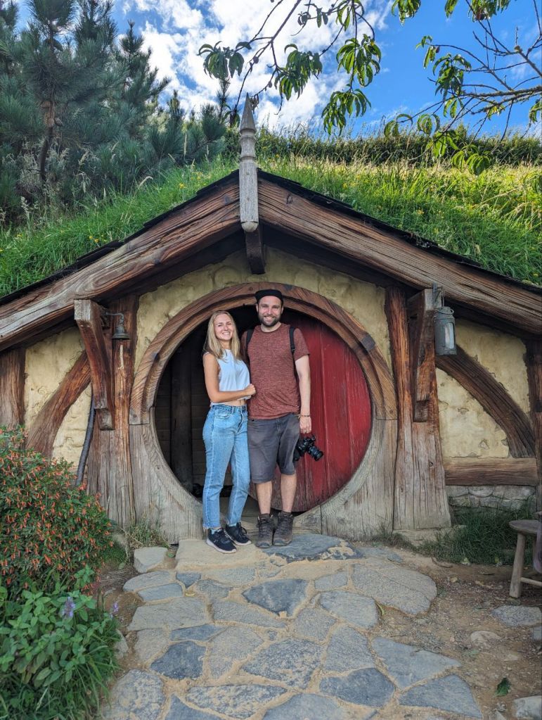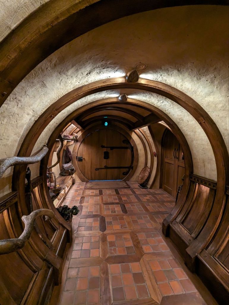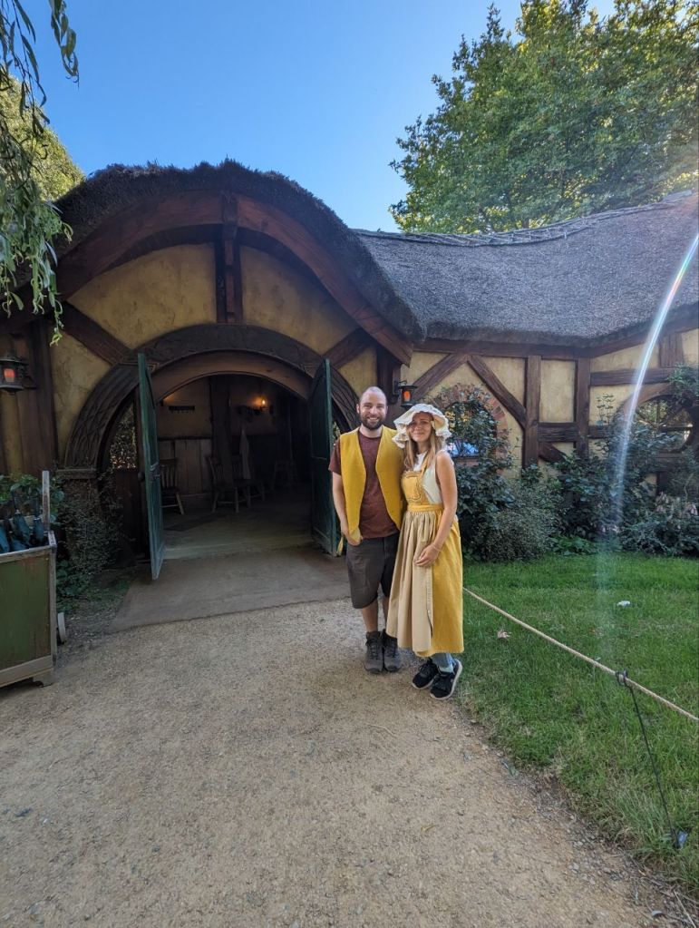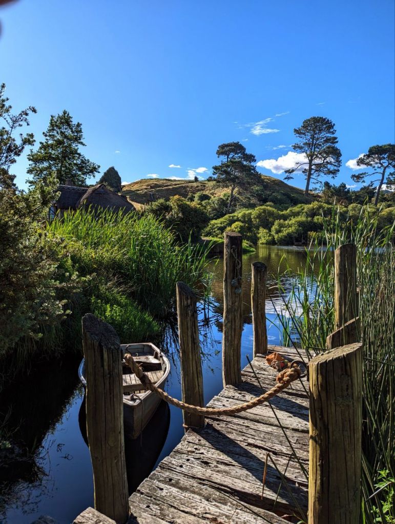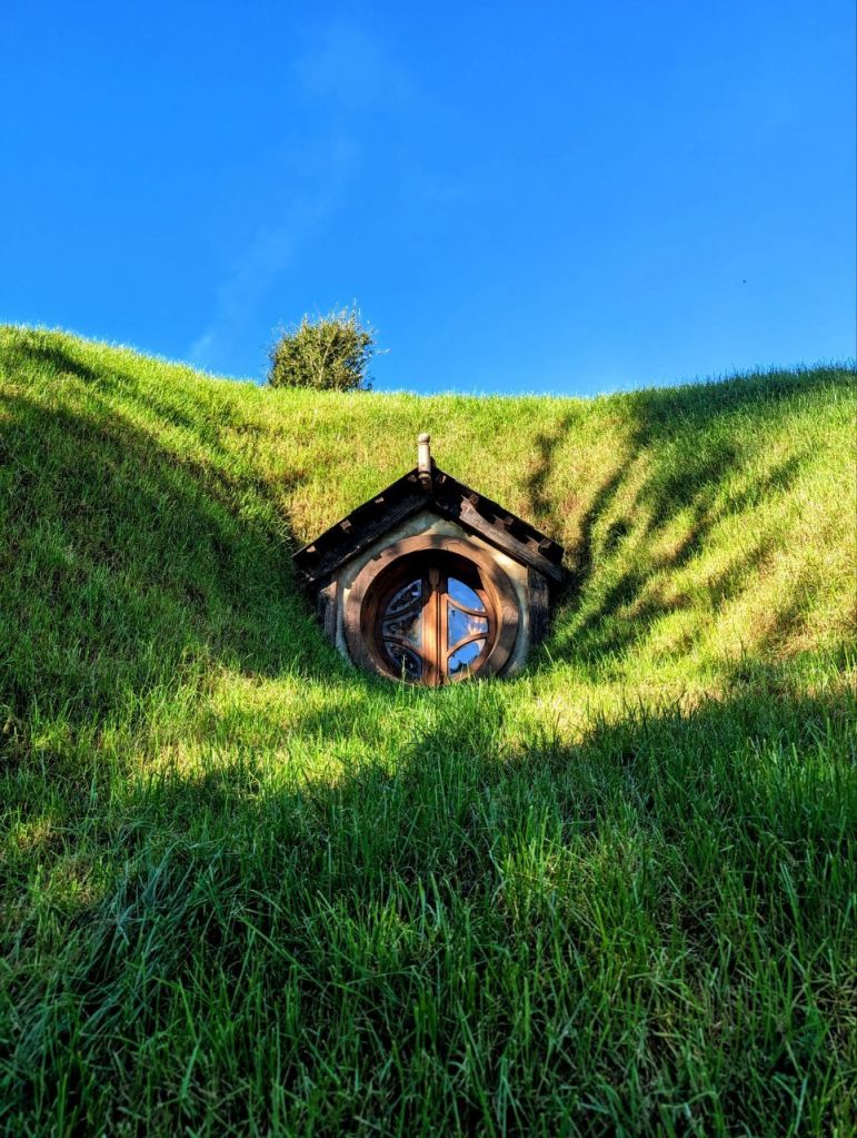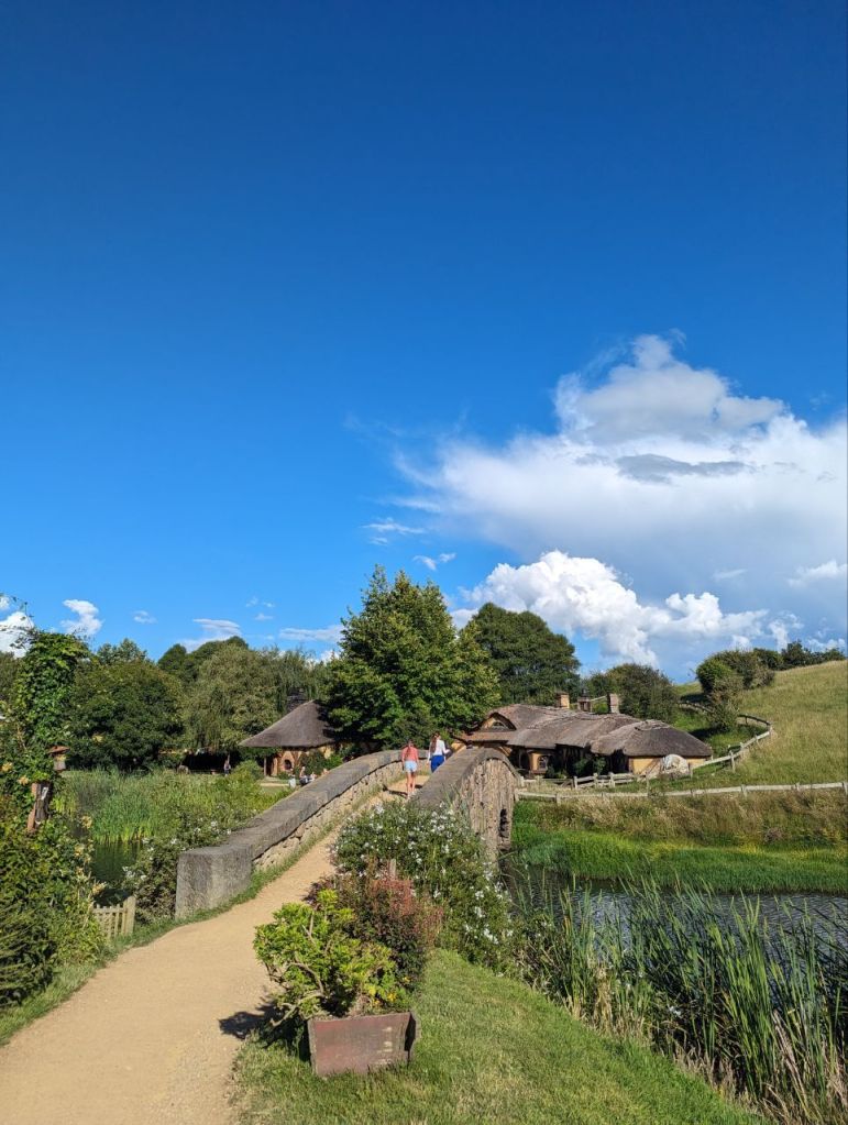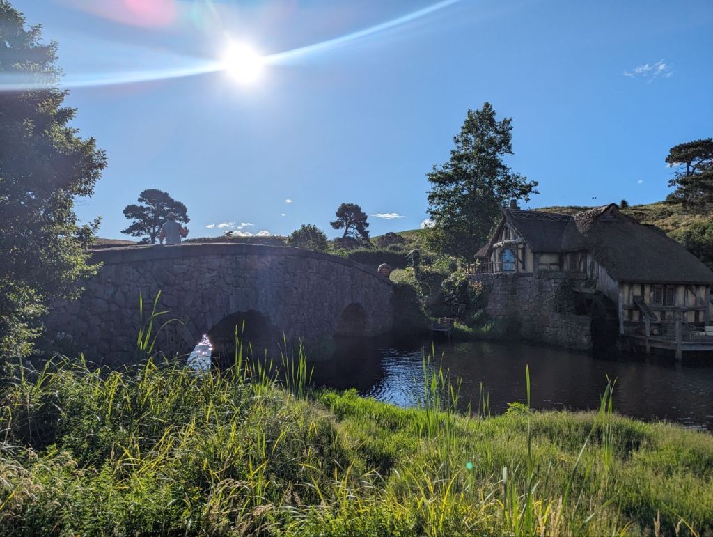 Wir erreichen Hobbingen (engl. Hobbiton), etwa 1,5 Stunden dauert die Führung, danach gibt’s Getränke in einer bekannten Hobbitgaststätte und nach 2,5 Stunden werden wir wieder zurück sein.