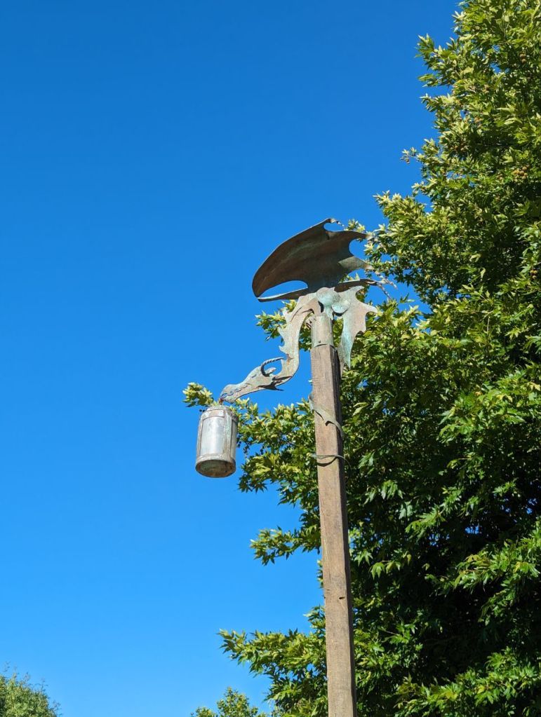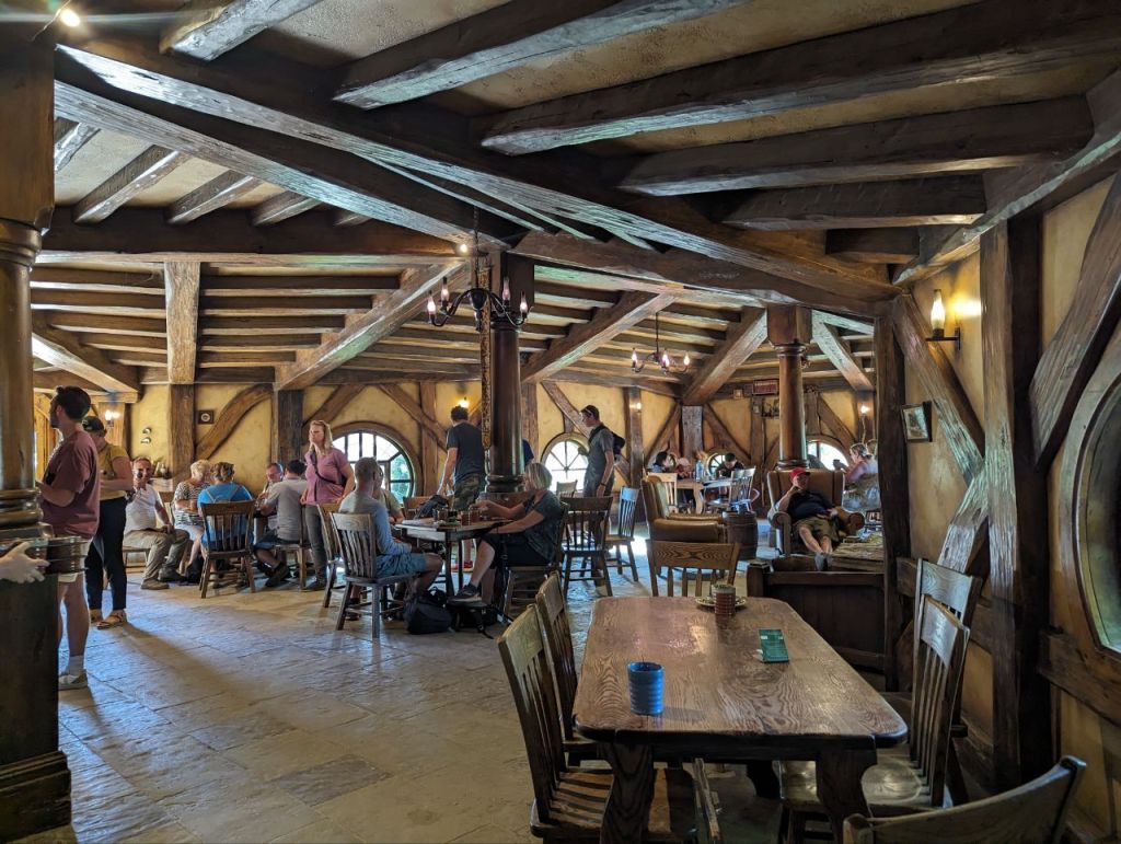 Als wir durch sind, geht es zu unserem letzten Halt: dem grünen Drachen. Hier bekommen wir einen Cider und ein Ginger Beer. Es hätte auch ein Amber Ale gegeben – alles aus der eigenen Hobbit-Herstellung.
