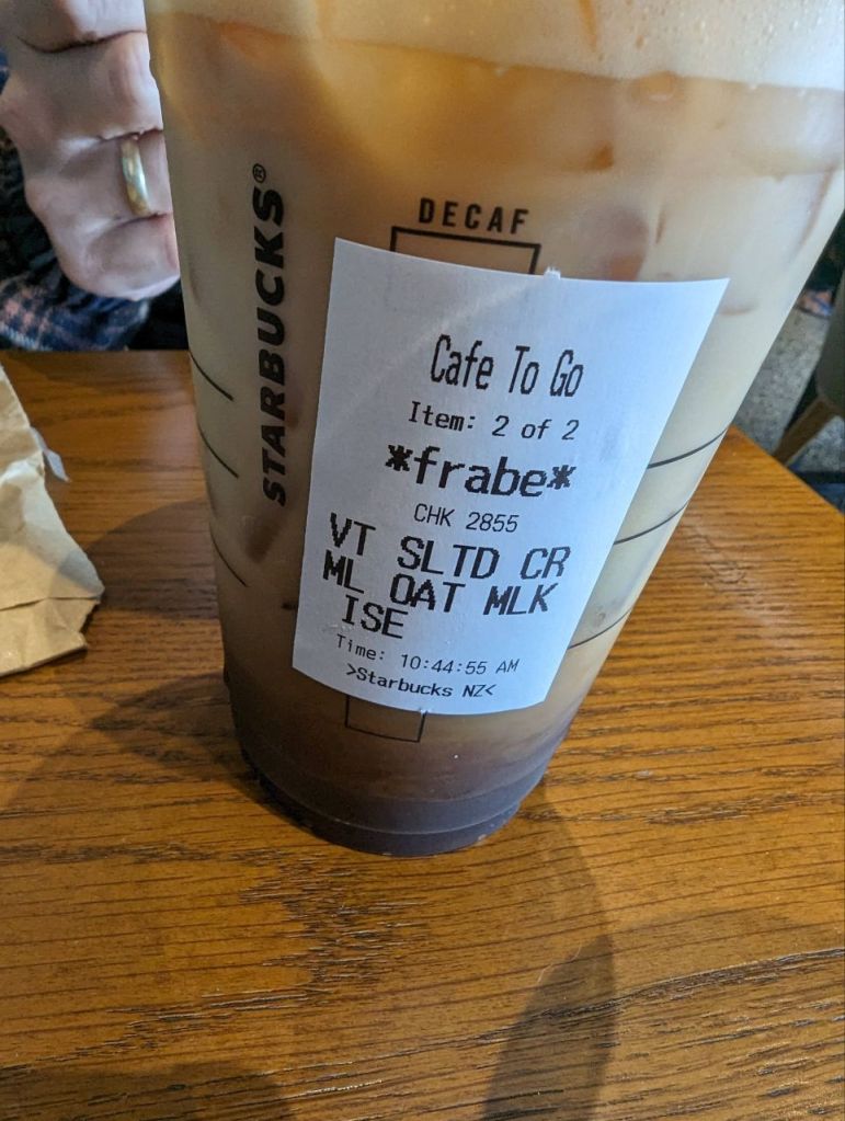 Wir stehen auf, checken aus und fahren zum Starbucks. Ein Kaffee für Frabe und ein Erdbeershake für Mira.