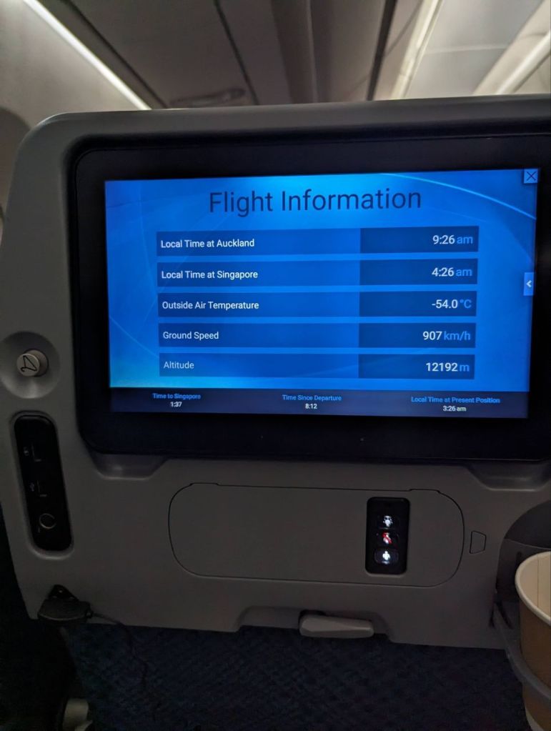 Wir fliegen los und erreichen nach ca. 10,5 Stunden Singapur.
