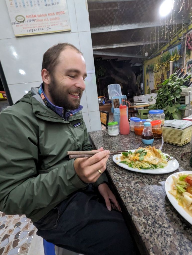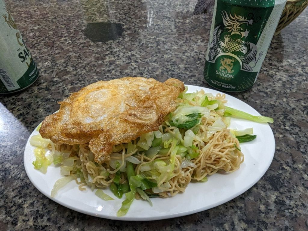 Abends suchen wir nach Essen. Mit Hand und Fuß verständigen wir uns im Restaurant und erhalten schlussendlich gebratene Nudeln mit Gemüse und Ei und… OHNE Fleisch. Gar nicht so einfach.