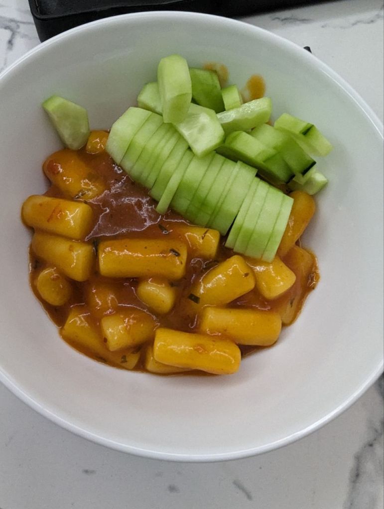 Abends machen wir uns Käse Tomaten Tteokbokki im Apartment.