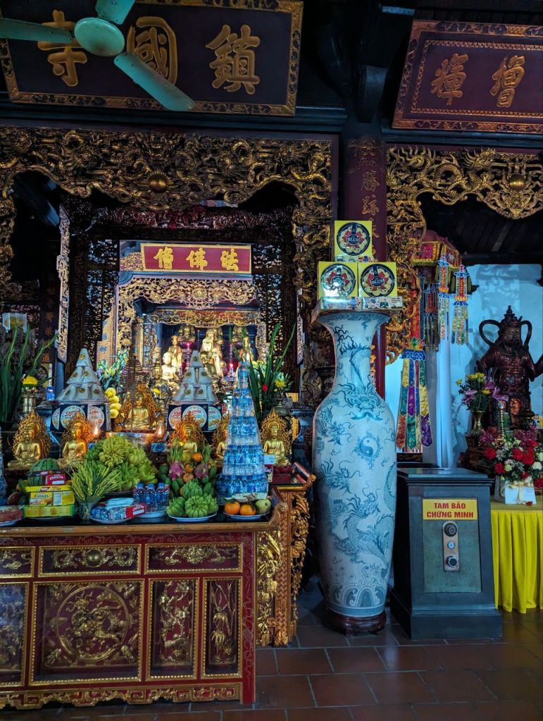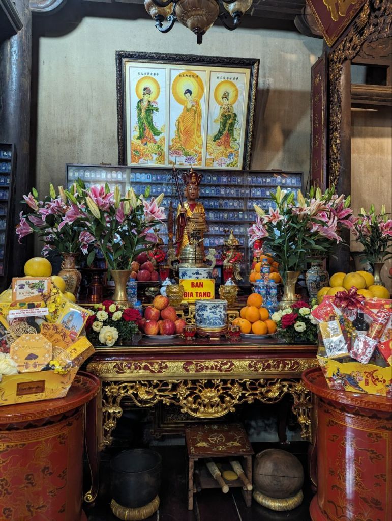Wir besuchen noch einmal den buddhistischen Tempel Tay Ho mitten im See.