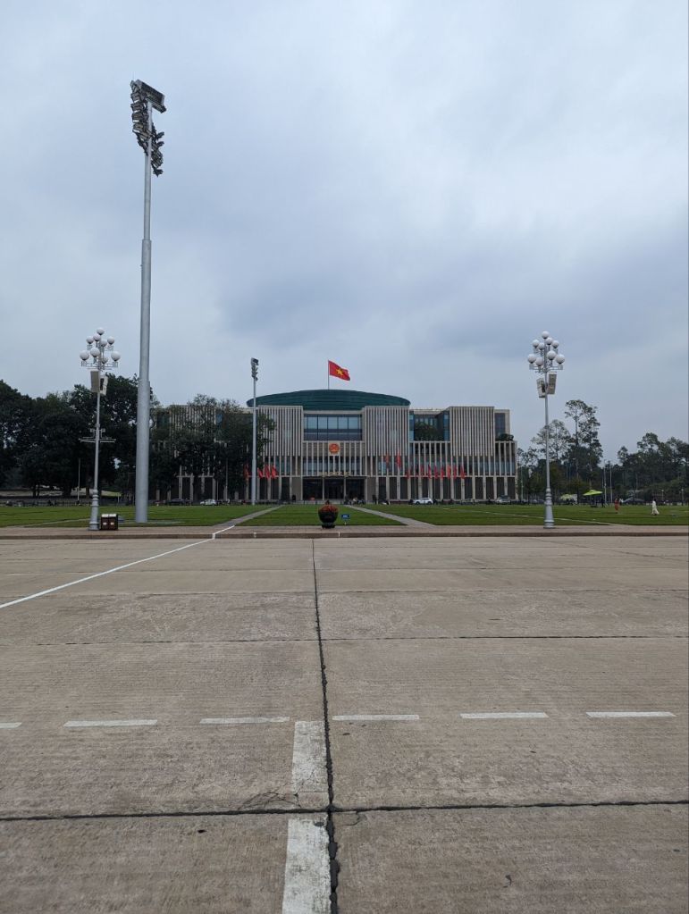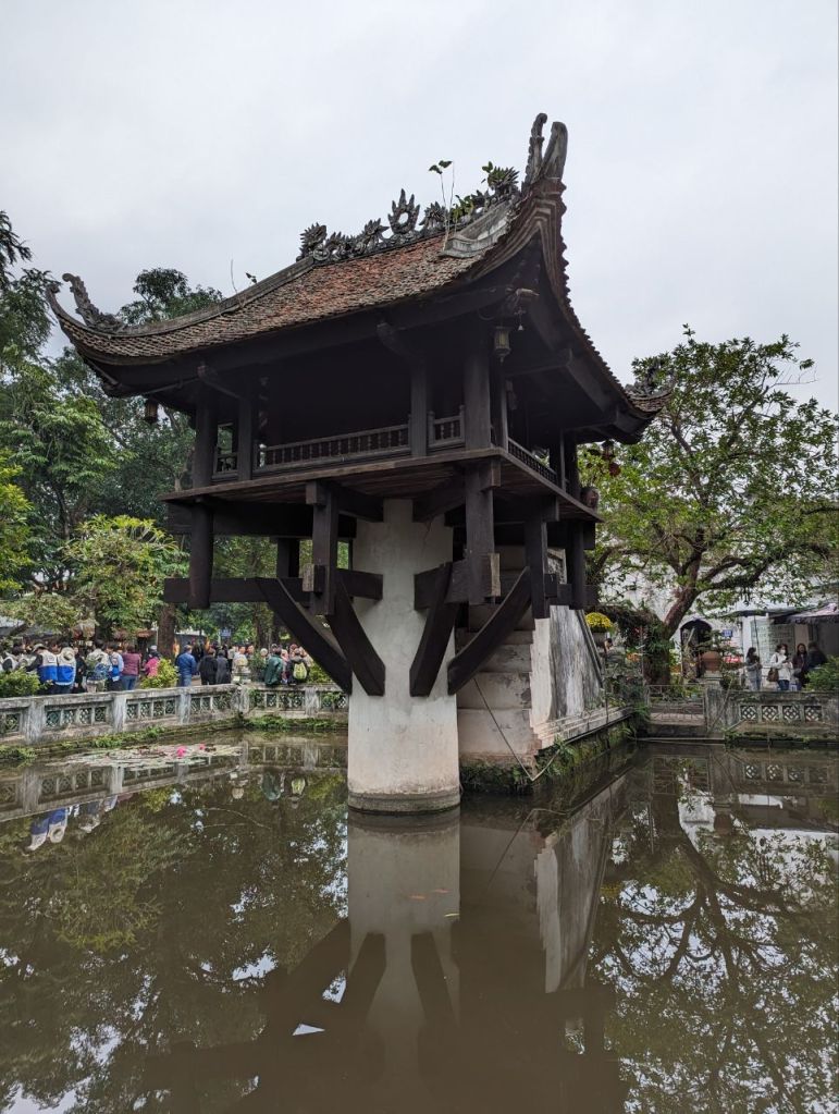 Es geht am Ho Chi Minh Museum vorbei zu einem kleinen Tempel und der Einsäulenpagode.