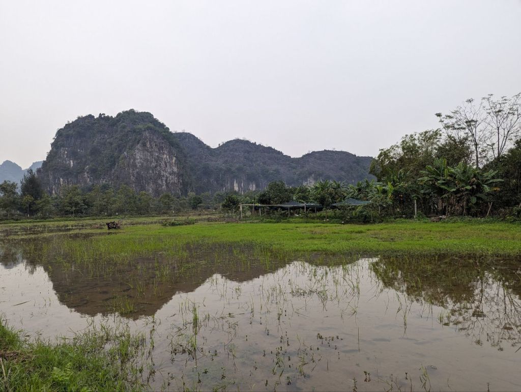 Die Umgebung von Ninh Binh ist eindrucksvoll, flaches Land, durchzogen von rauen steilen Felsen.