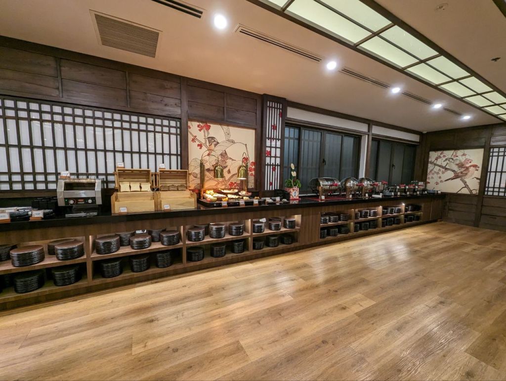 Wir genießen den Tag im eigenen Onsen und gehen abends Buffet essen.