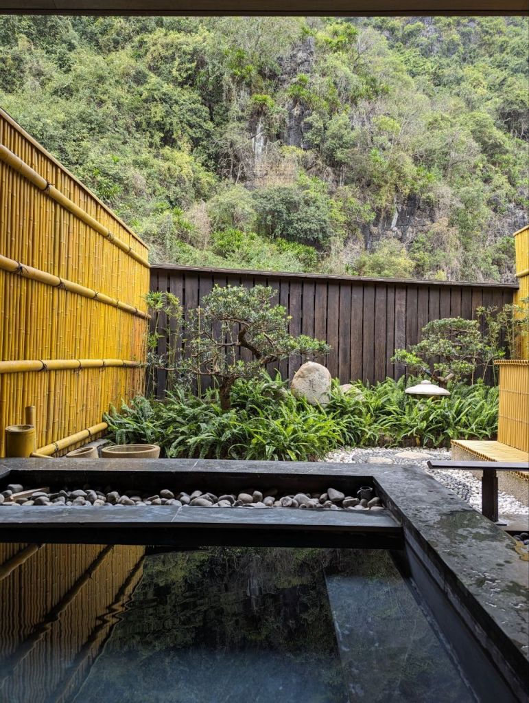 Mira hüpft noch mal in den privaten Onsen und dann sagen wir der Entspannung mit einem weinenden Auge ade.
