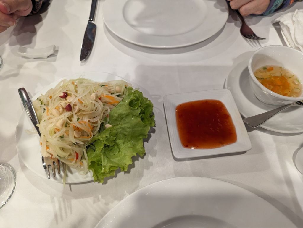 Mittags gibt’s Buffet das wirklich lecker und auch für uns abwechslungsreich ist.