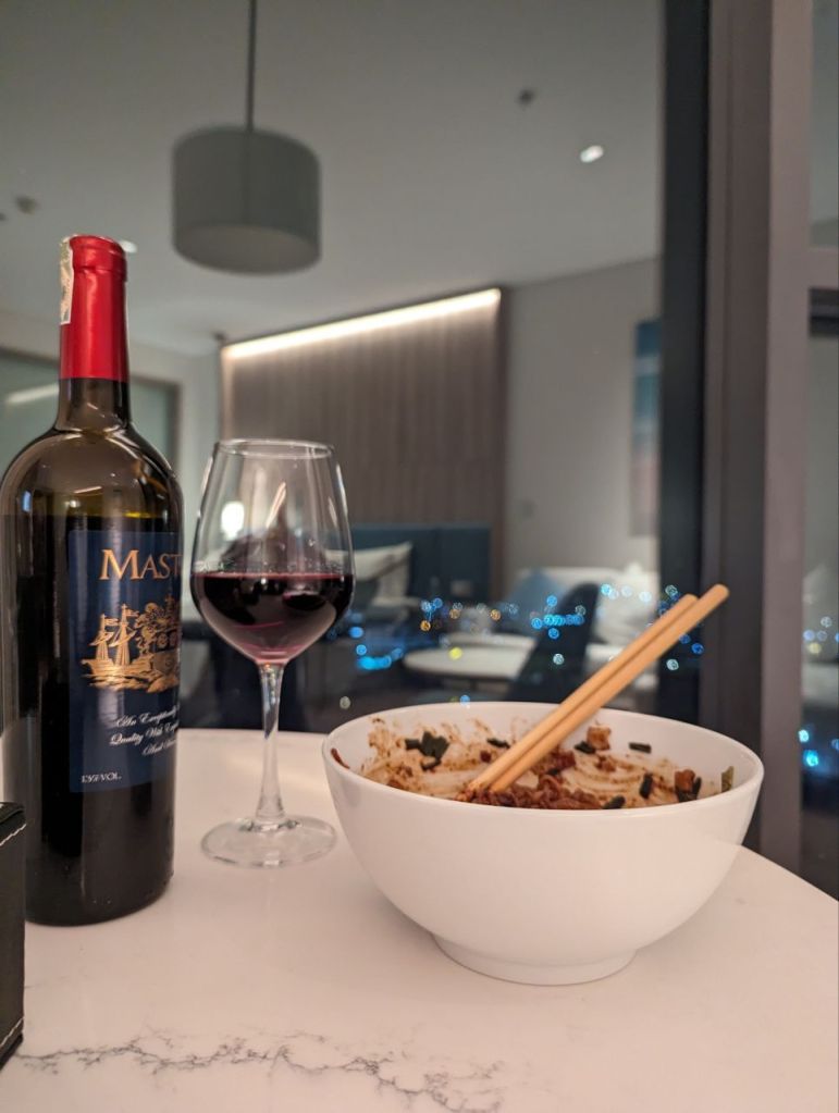 Deswegen gibt’s abends Instantnudeln, eher unkreativ. Dazu einen fürchterlichen Wein, wenn man es denn Wein nennen kann.