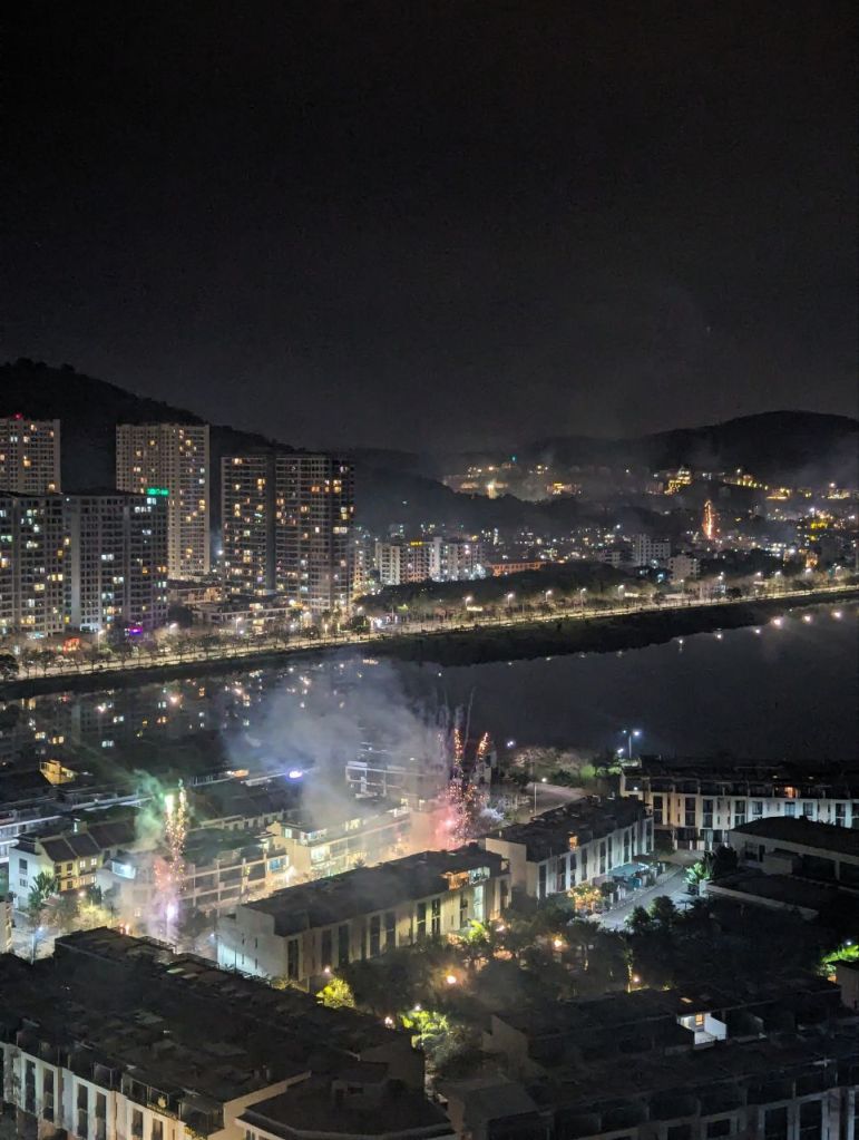 Dann ist Neujahr, das Jahr des Drachen beginnt. Wir haben einen wunderbaren Ausblick aus dem 21. Stock auf das Feuerwerk von oben. Sehr schön mit den beleuchteten Hochhäusern und Spiegelungen im Wasser.