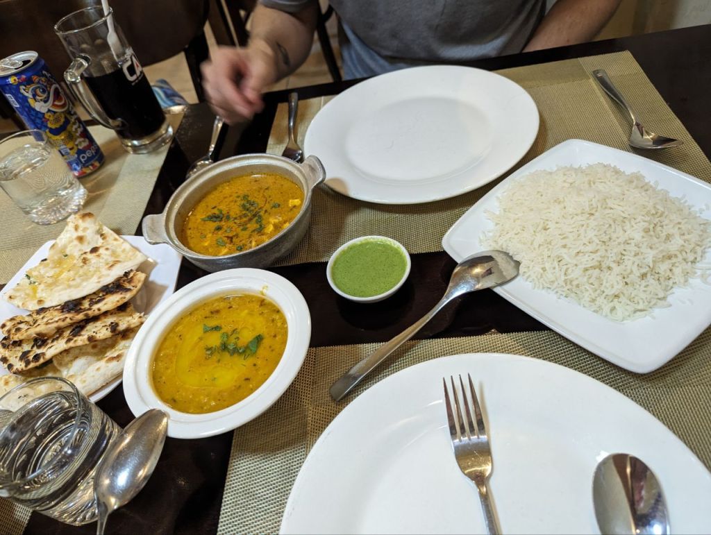 Nach zwei rappelvollen vegetarischen Restaurants kehren wir bei einem Indischen ein. Butter Paneer für Fabi und irgendwas mit Linsen für Mira. Schmeckt ganz gut, also eigentlich wie überall auf der Welt 😅.