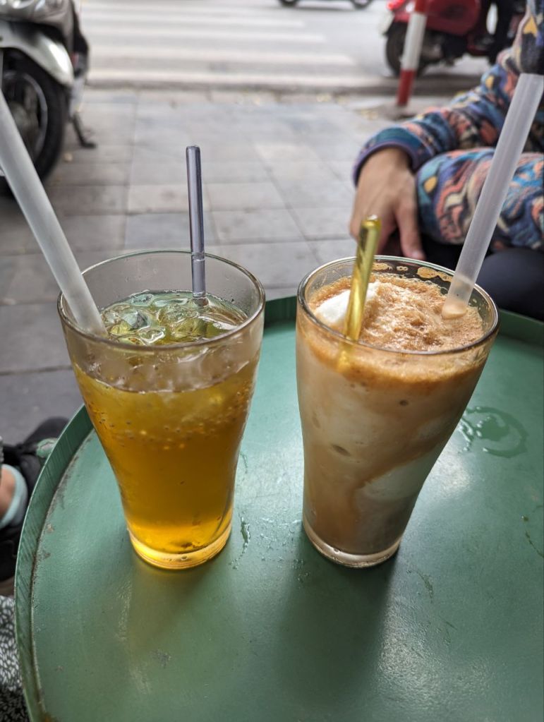 Wir gehen mittags ins Café, ins Kalina Café. Für Frau Kallina gibt’s einen Vanille Oolong Tee und für Fabi einen Kokoskaffee.