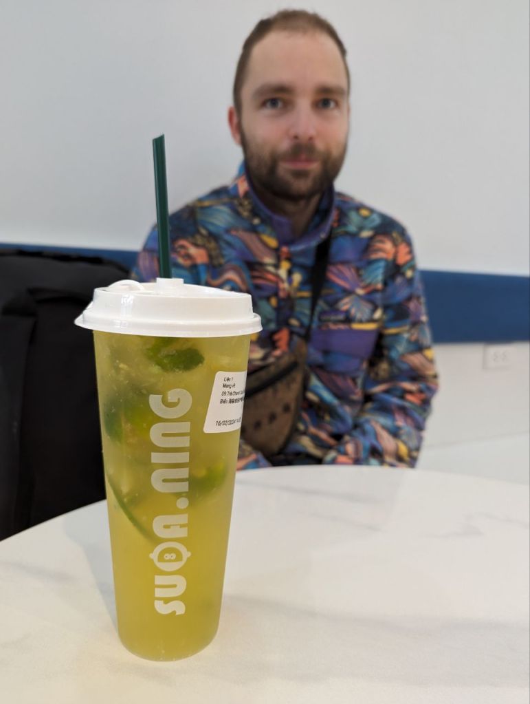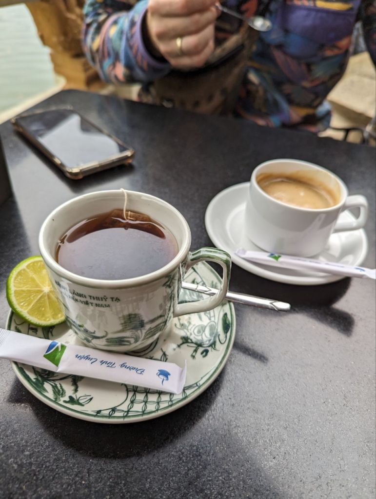 Danach gehen wir weiter spazieren und kehren irgendwann in einem Teeladen ein. Wir teilen uns einen Sea Salt-Limetten-Kumquatt-Tee. Sehr interessant, salzig, sauer, süß, schmeckt ganz gut.
