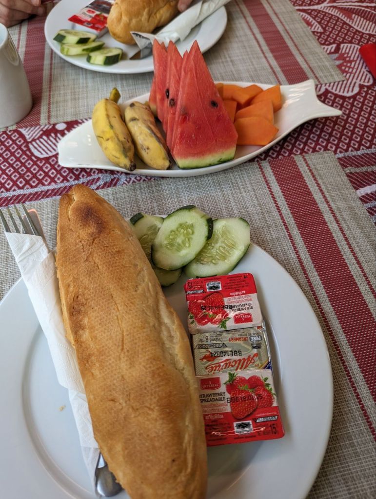 Fabi hat schlecht geschlafen, also wird nach dem Frühstück um 10 Uhr nochmal gechillt. Zum Frühstück gabs Marmeladenbrötchen und Obst.