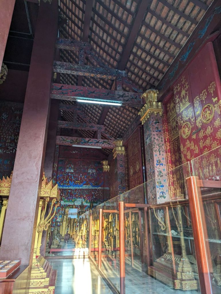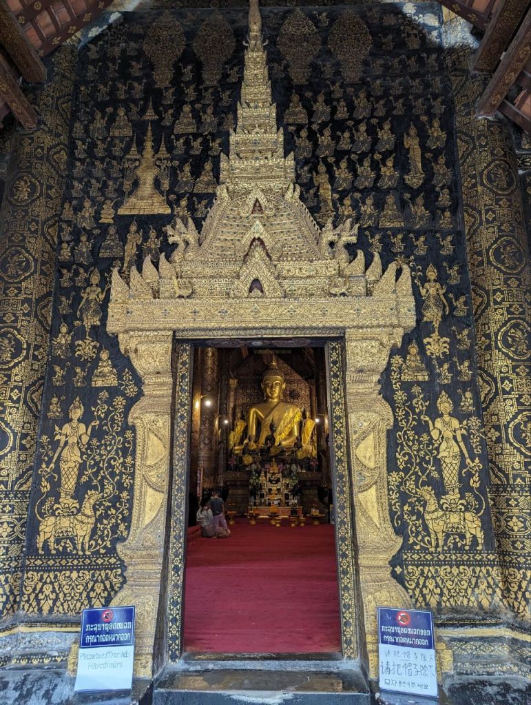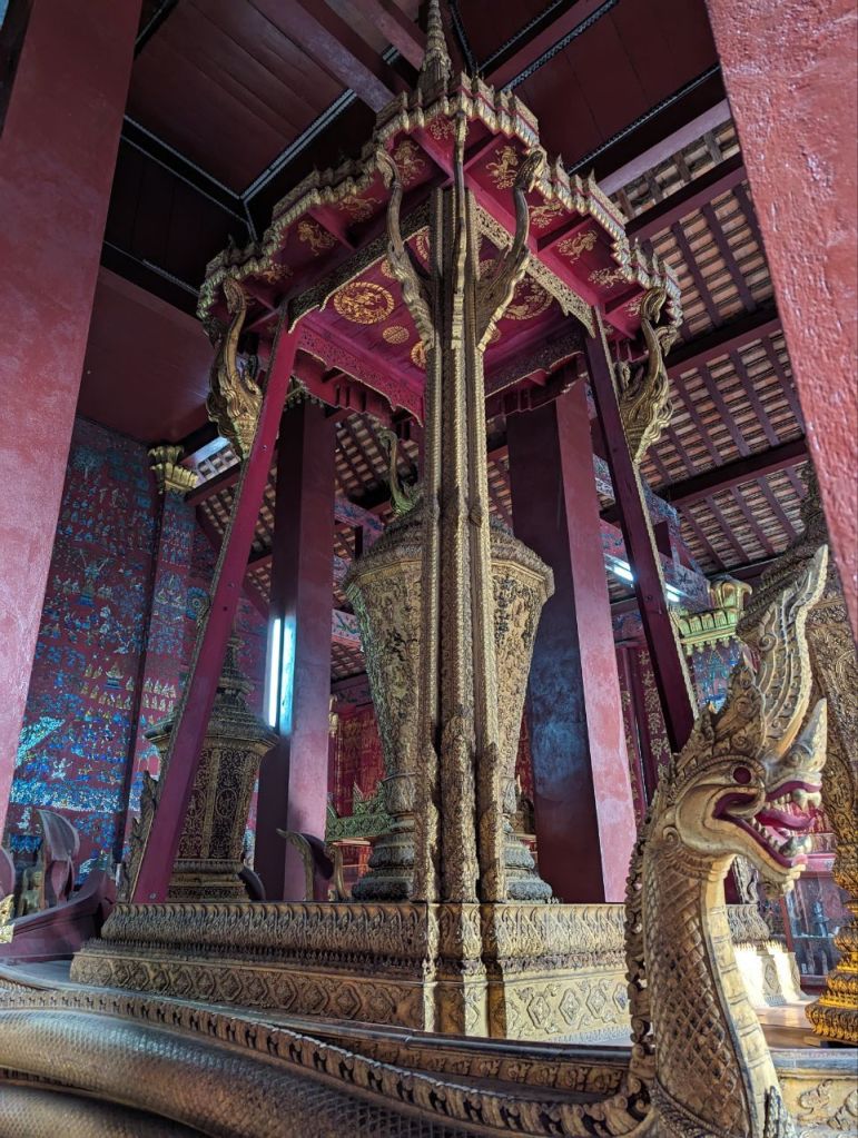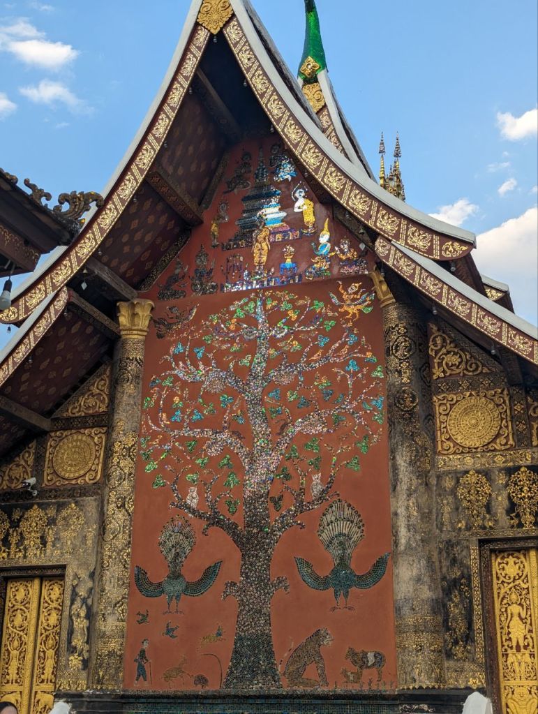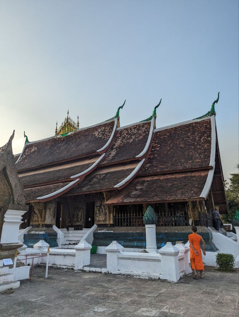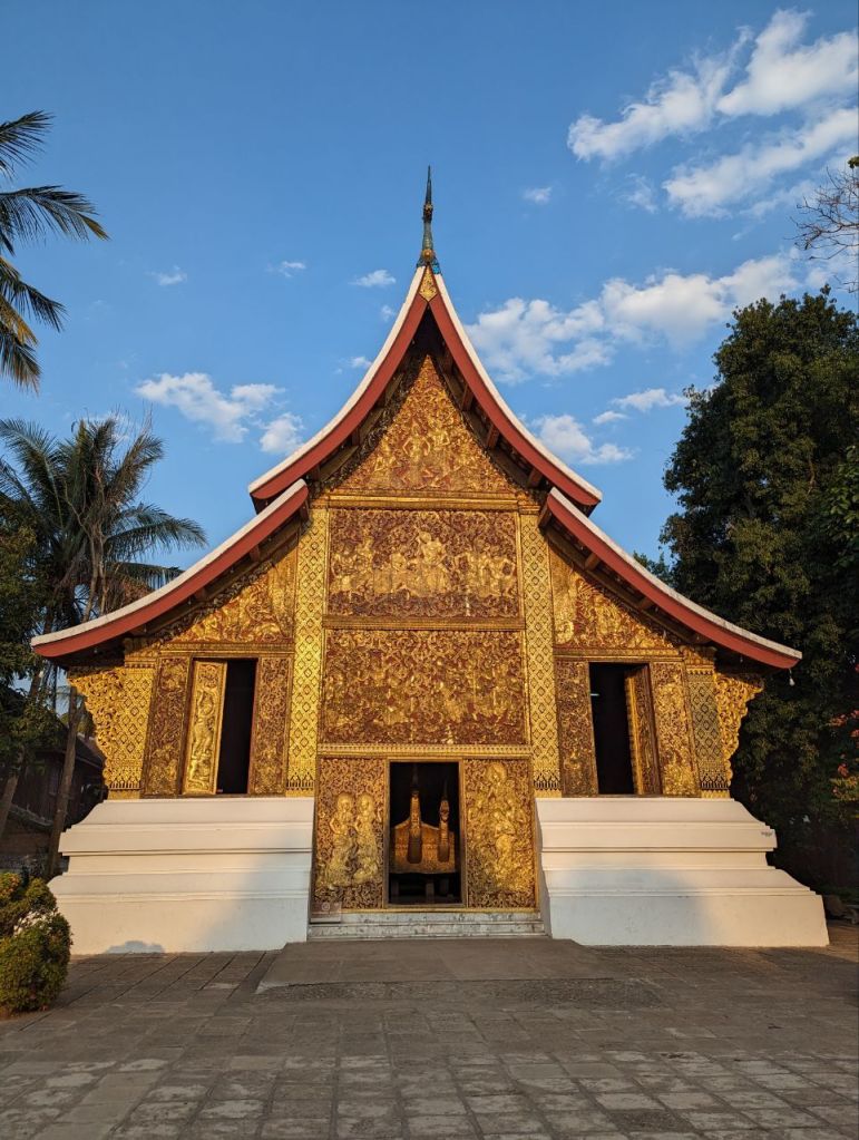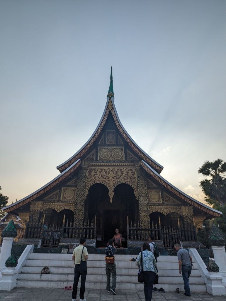 Am Nachmittag gehen wir den buddhistischen Tempel Wat Xieng Thong an der Spitze der Flusshalbinsel besuchen. Die reichlich verzierten und vergoldeten Tempelanlagen sind im Abendlicht wirklich toll.