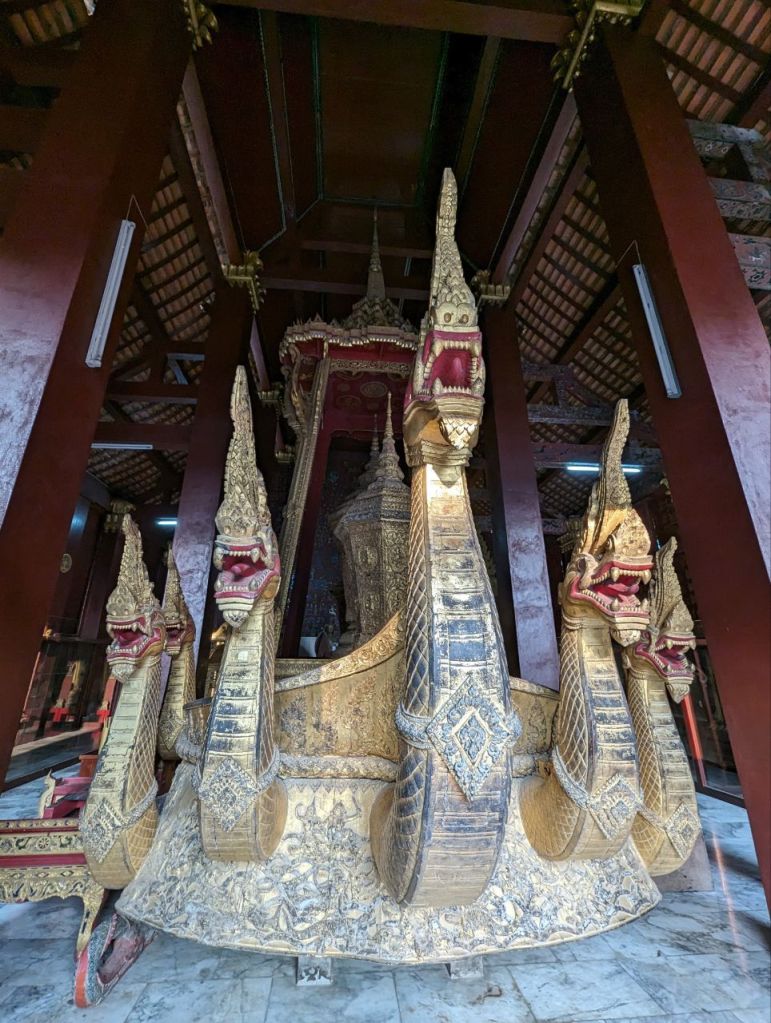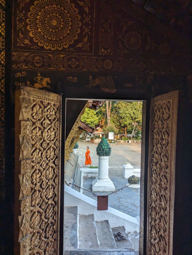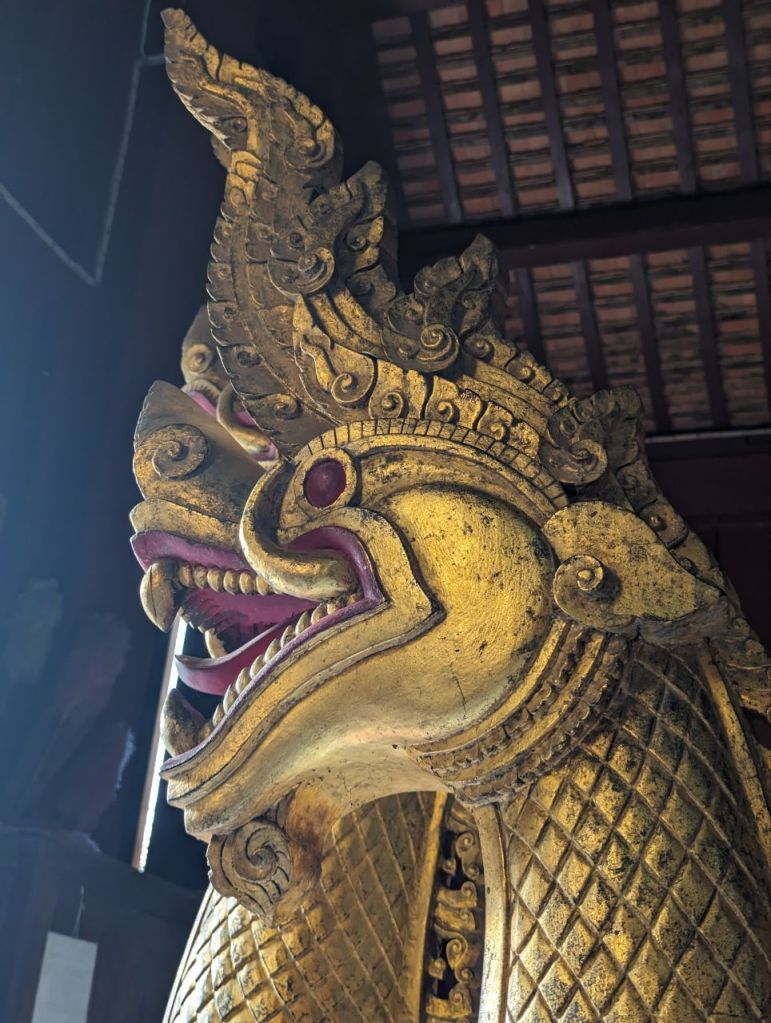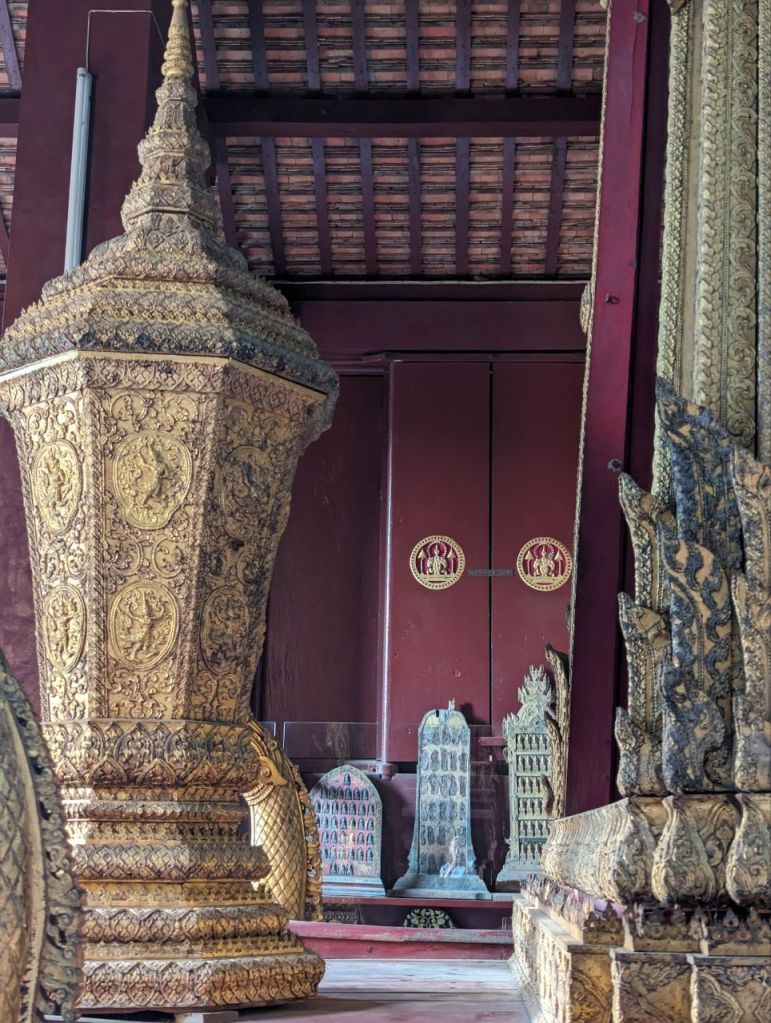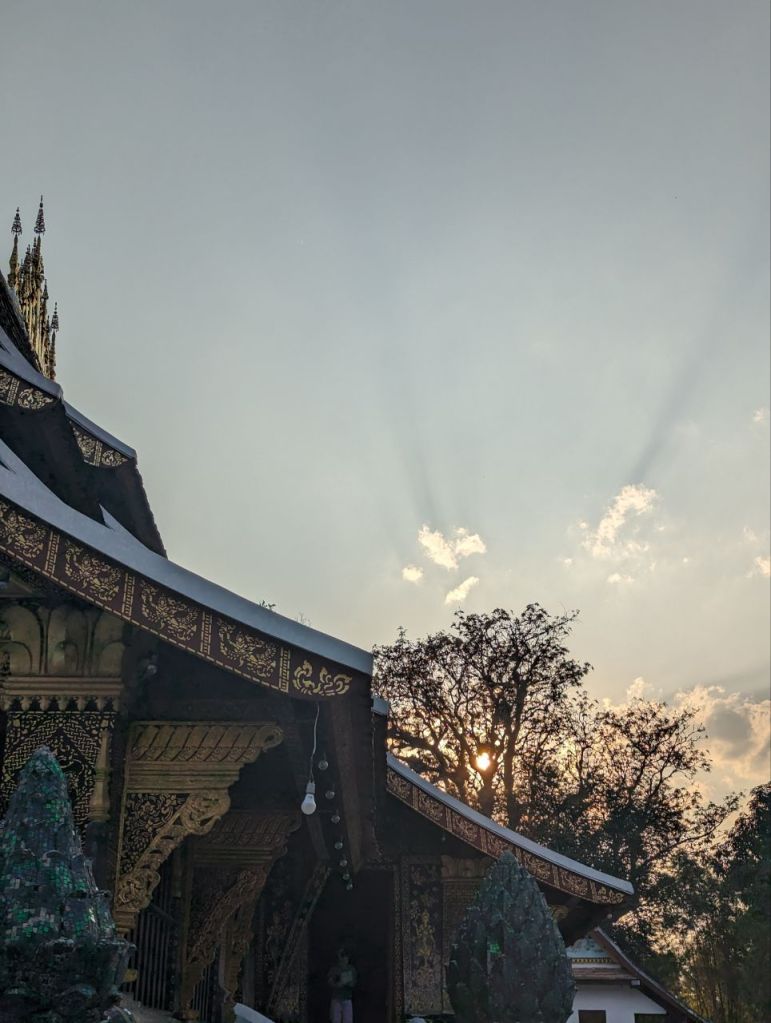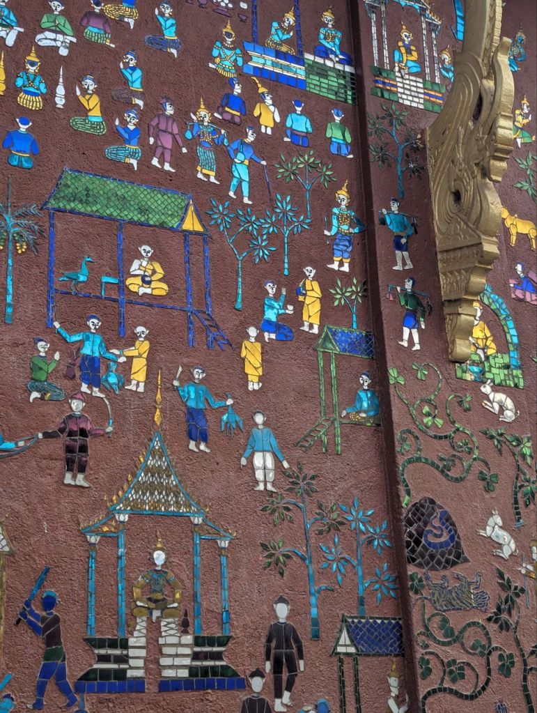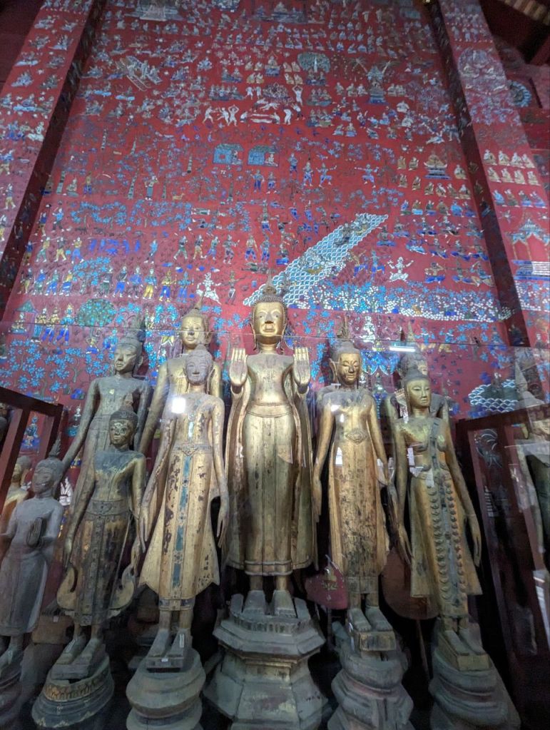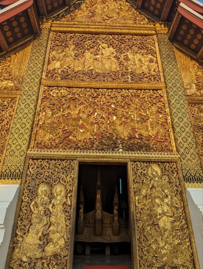 Am Nachmittag gehen wir den buddhistischen Tempel Wat Xieng Thong an der Spitze der Flusshalbinsel besuchen. Die reichlich verzierten und vergoldeten Tempelanlagen sind im Abendlicht wirklich toll.