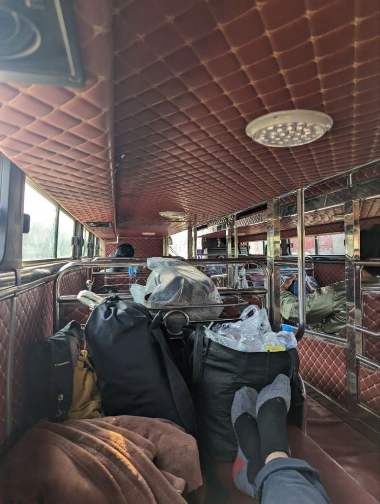 Diesmal ist es ein richtiger Bus mit Betten. (Diese entsprechend eher harten Matten). Mit uns sind nur Locals im Bus.