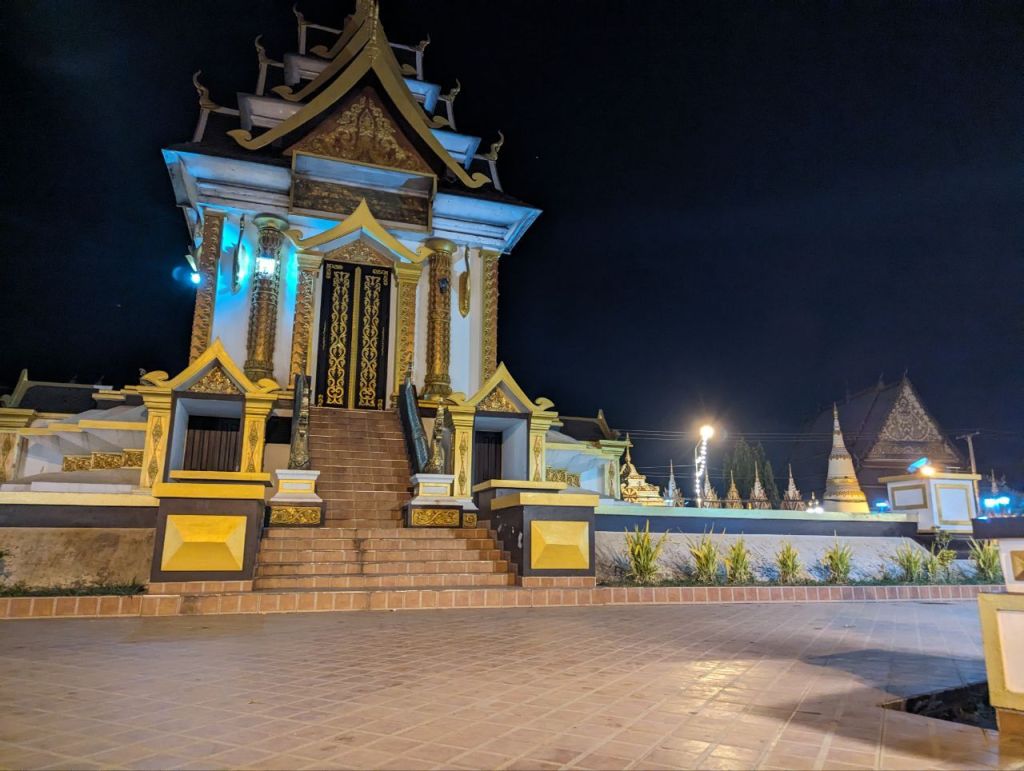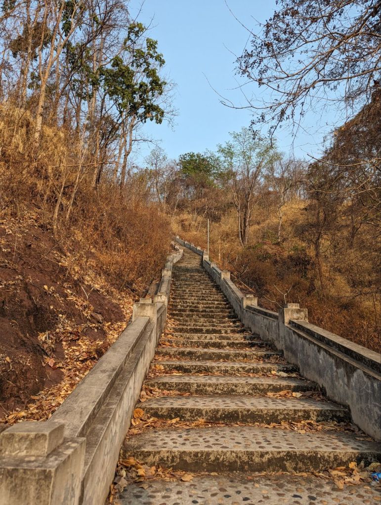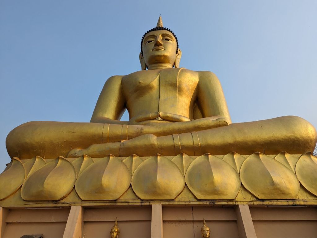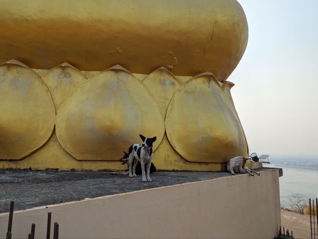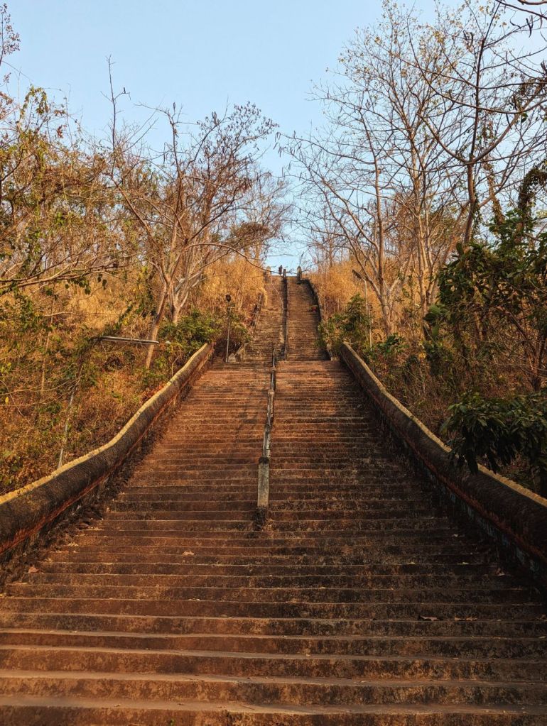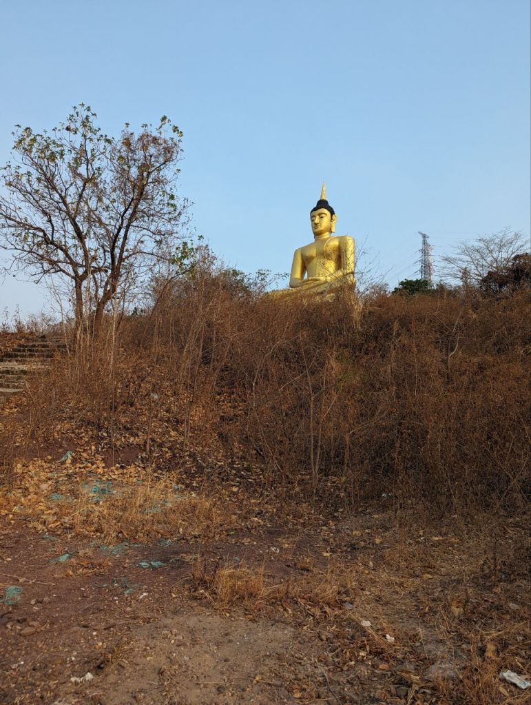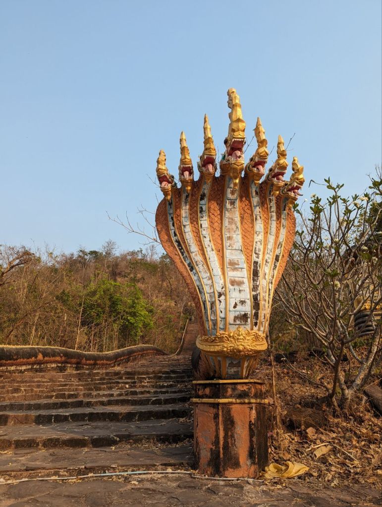Hier geht’s ca. 300 m ein „paar“ steile Stufen zum Tempel und der riesen Buddha Statue hoch. Es ist immer noch sehr warm und wir schwitzen gut, aber die Aussicht lohnt sich. Der Beginn des Sonnenuntergangs ist toll.