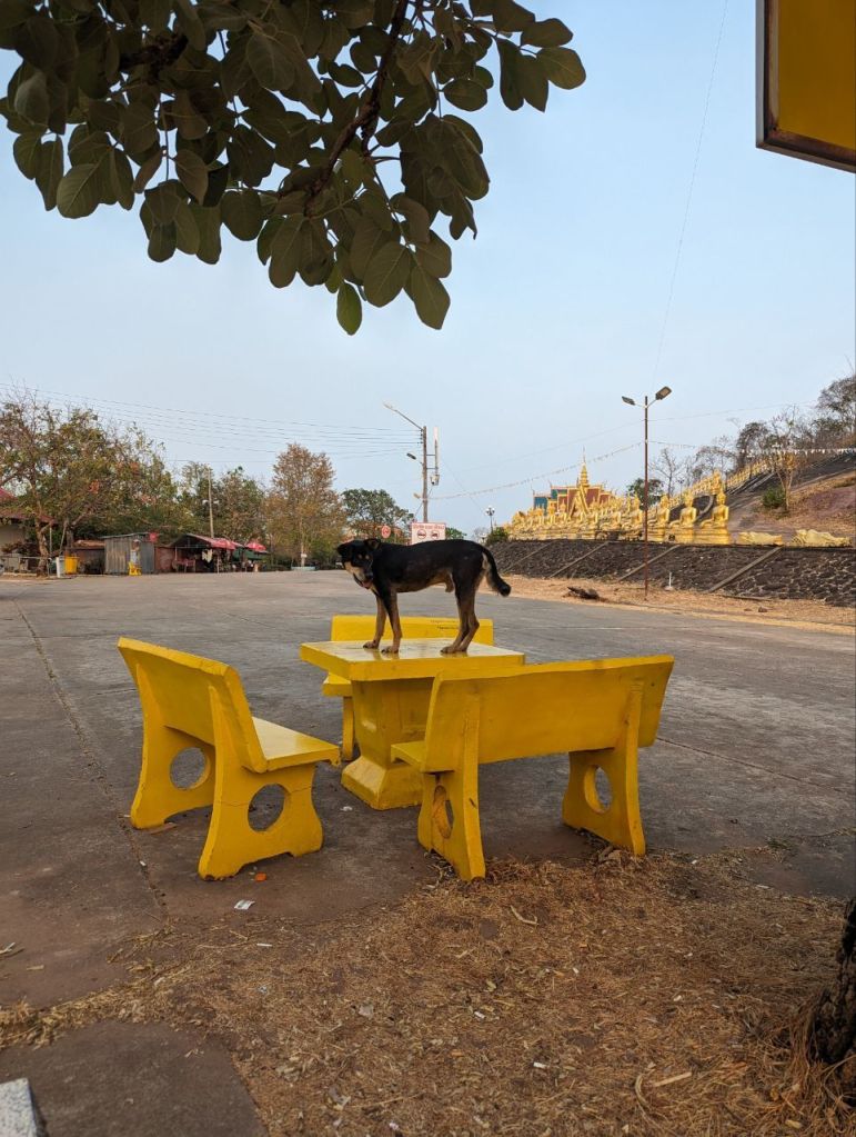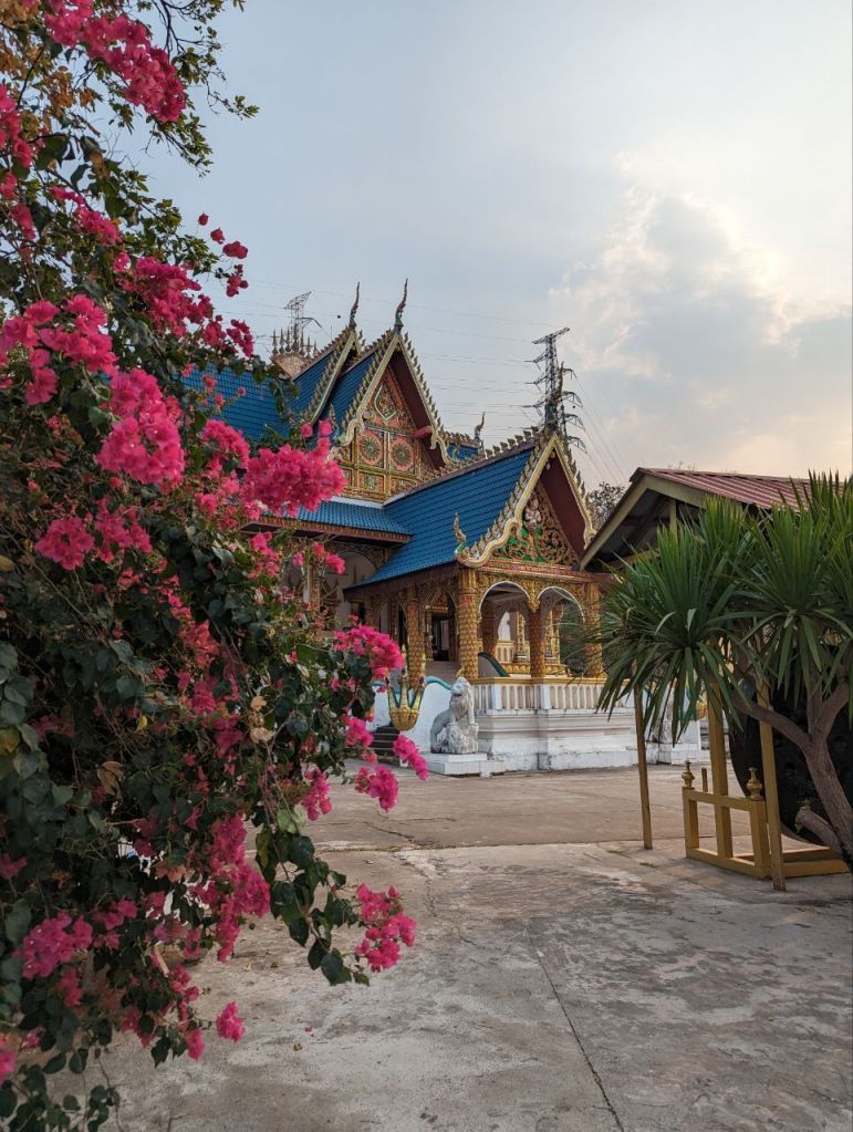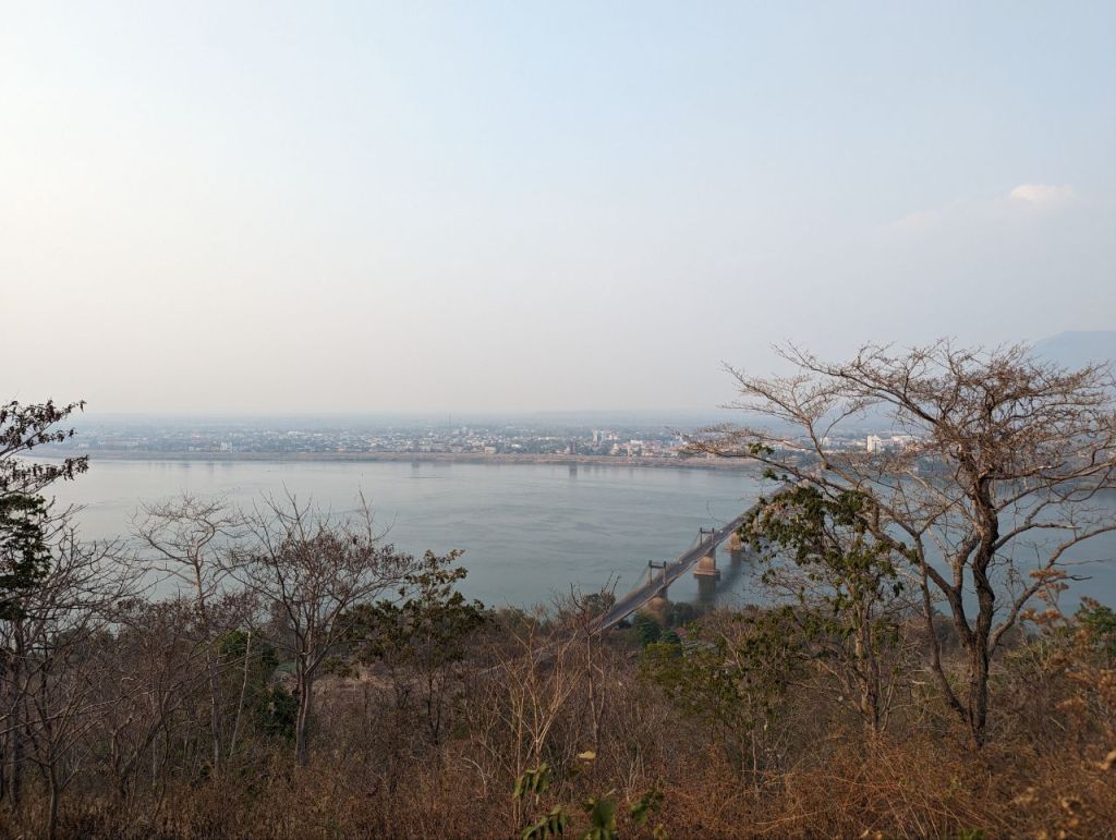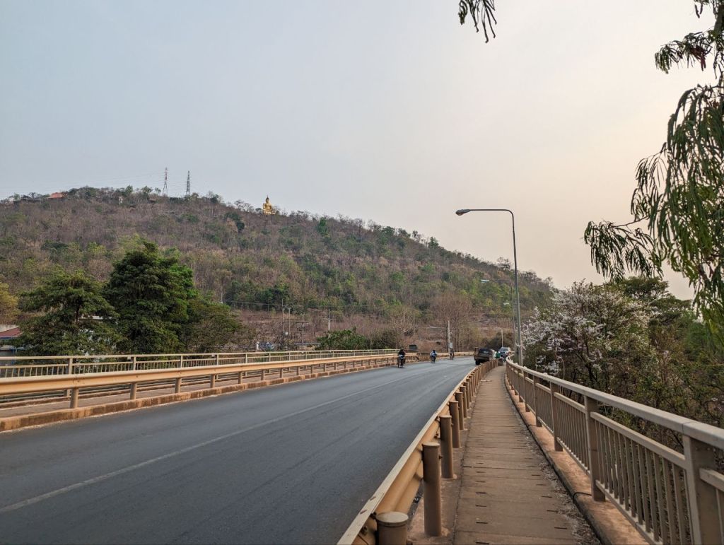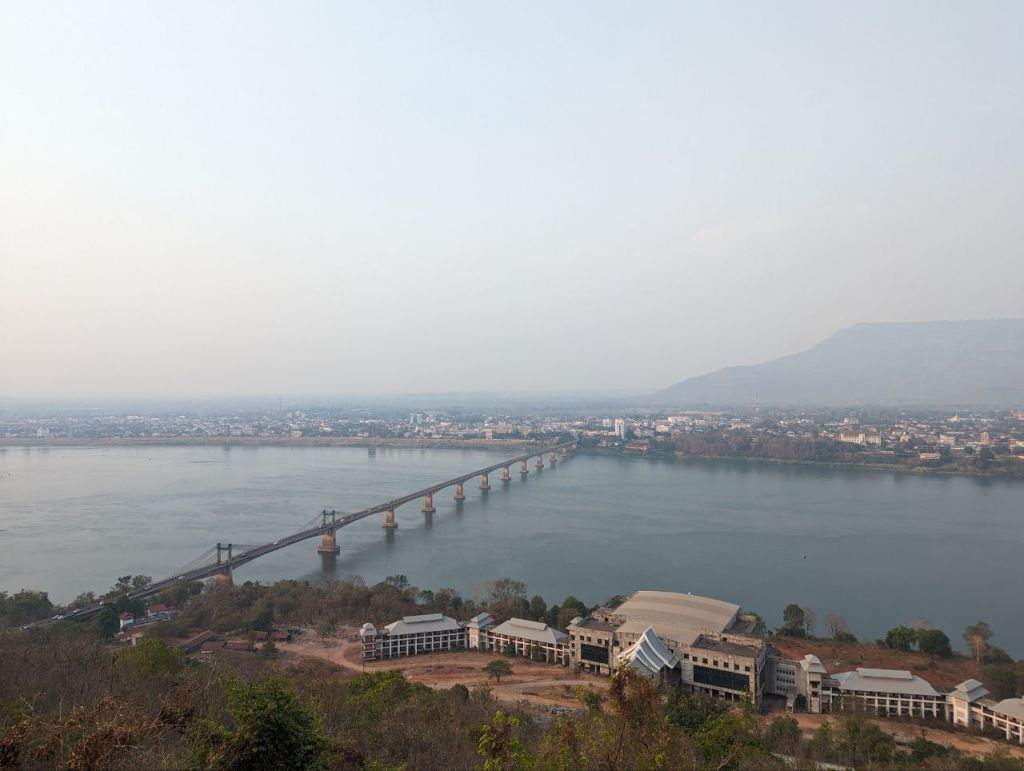 Nachmittags lassen wir uns nach ein paar Verwirrungen über die Mekong Brücke zum Fuß des Wat Phousalao Tempels fahren.