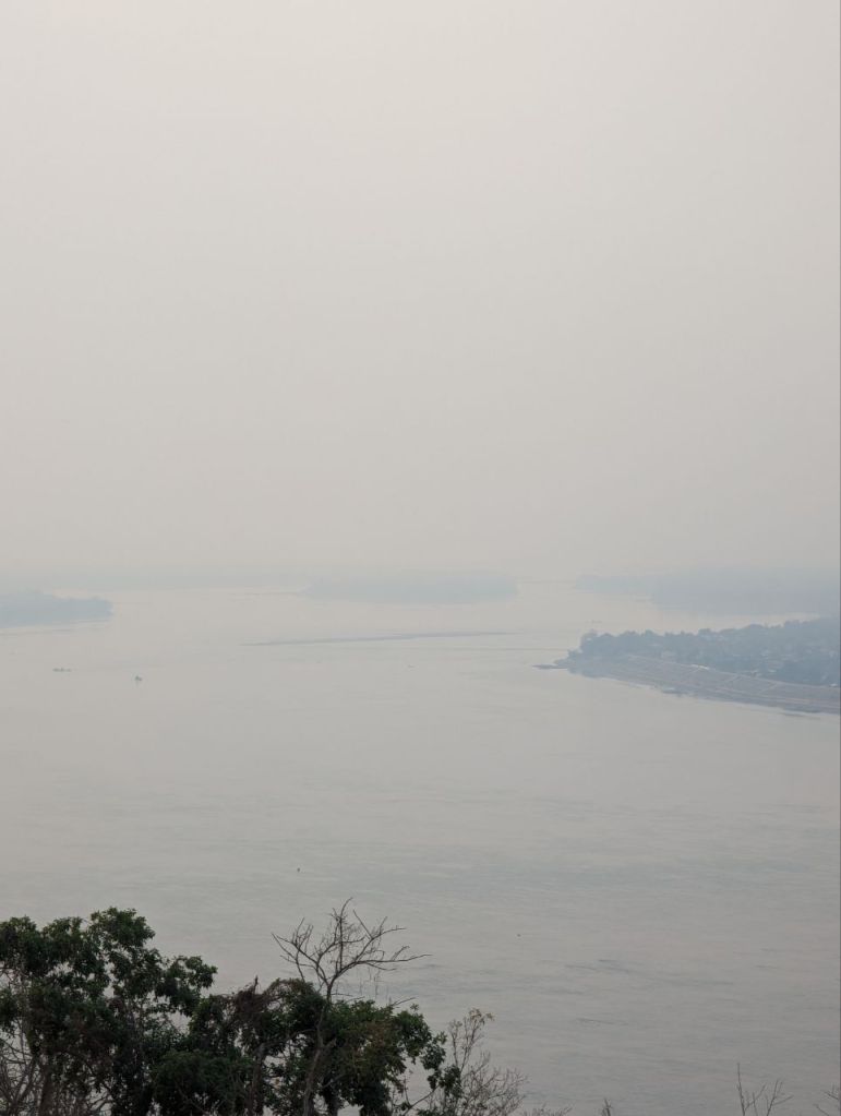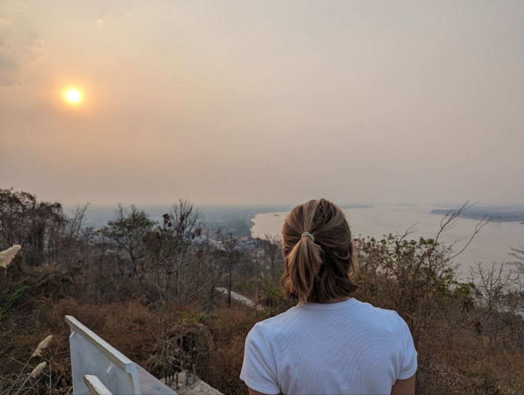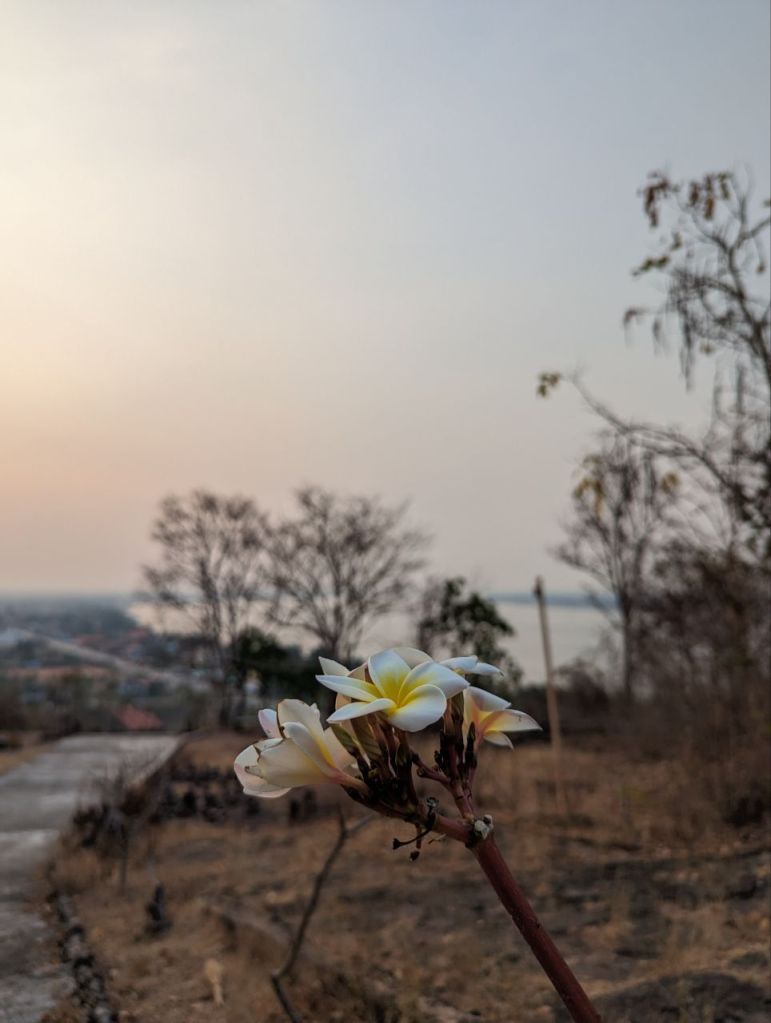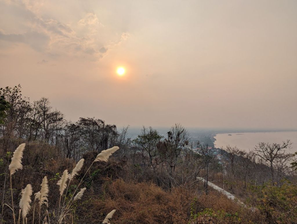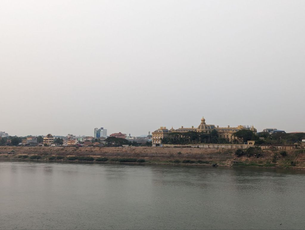 Wir laufen die ca. 3 km zurück über die Brücke in die Stadt. Unsere bisher längste „zu Fuß“ Brücke (ca. 2 km). Der Sonnenuntergang über Mekong ist einzigartig.