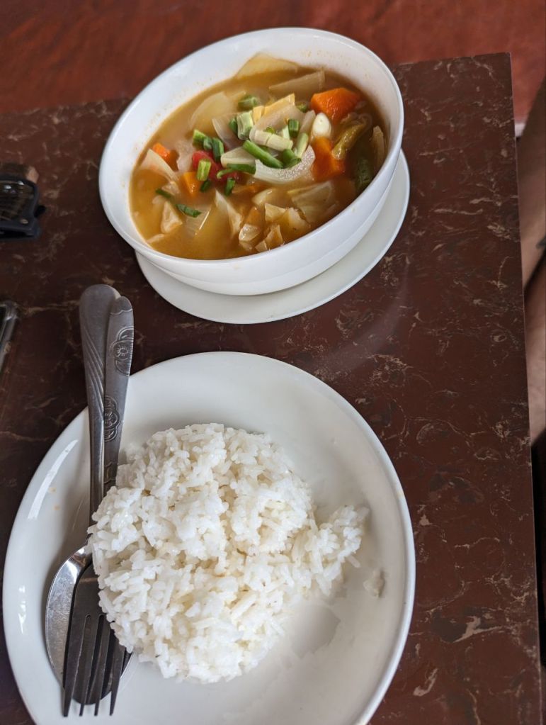 Ein kurzer Stopp, zwei Mitreisende steigen Richtung Kambodscha aus und wir fahren weiter nach Vakasong zu der Fähre.