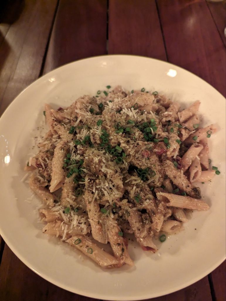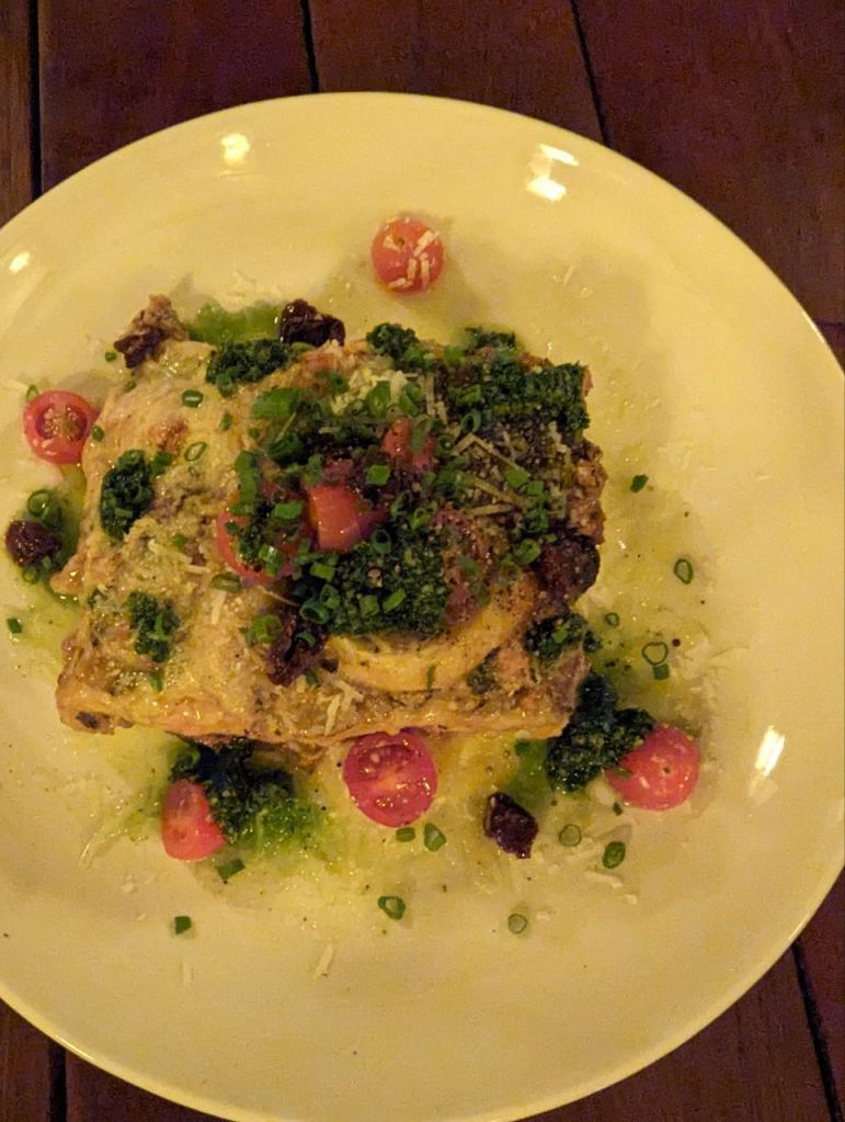 Abends machen wir einen kleinen Spaziergang zum Restaurant Mojo. Sehr gutes, authentisches italienisches Essen. Überbackene Aubergine zur Vorspeise, dann Nudeln und Gemüselasagne und ein Limoncello Daiquiri. Etwas teuer, aber sehr gut.