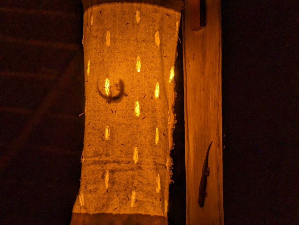 Über die Reisfelder geht’s samt Hundepatrouille im Dunkeln zurück.