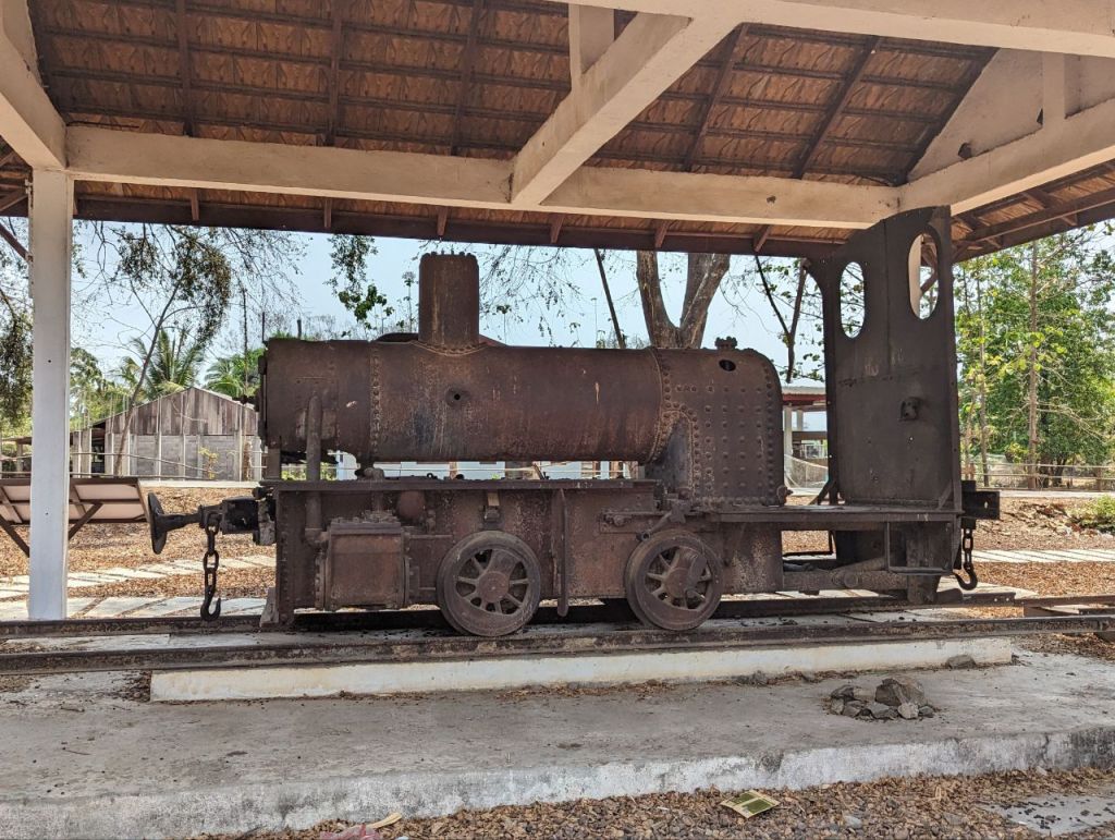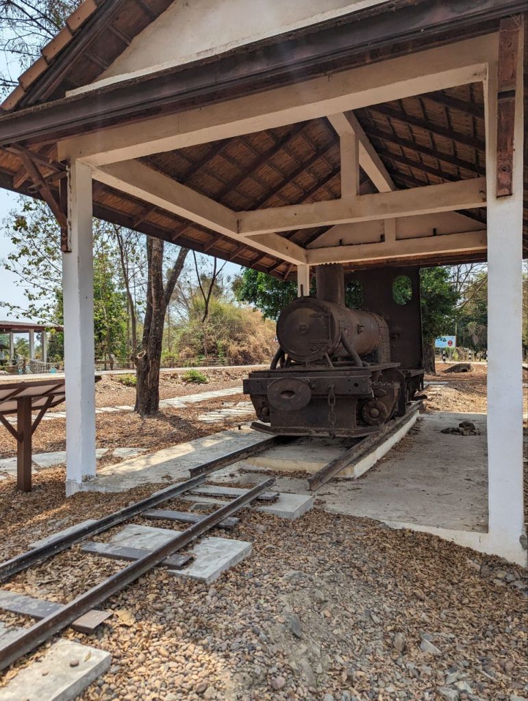 Hier führte die alte Eisenbahnstrecke entlang und wir sehen die historische Lok.
