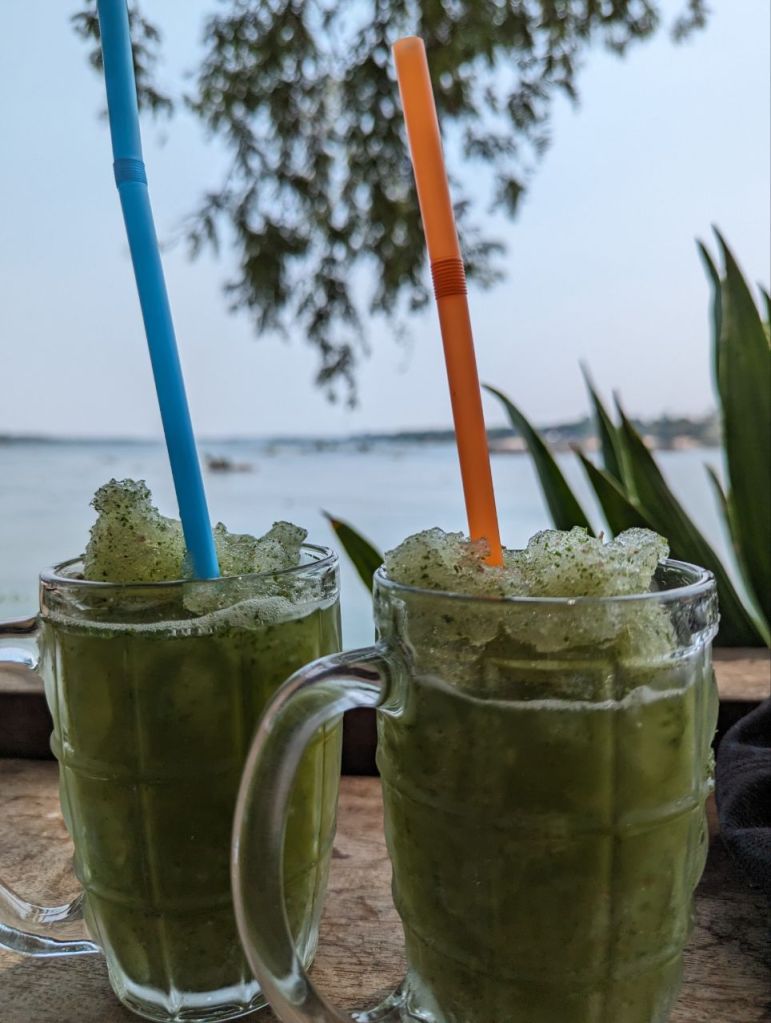 Wir trinken einen Lemon Mint Slushy, dann geht’s entspannt über die schönen Inseln zurück.