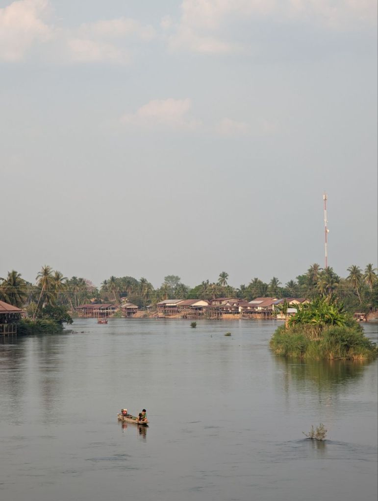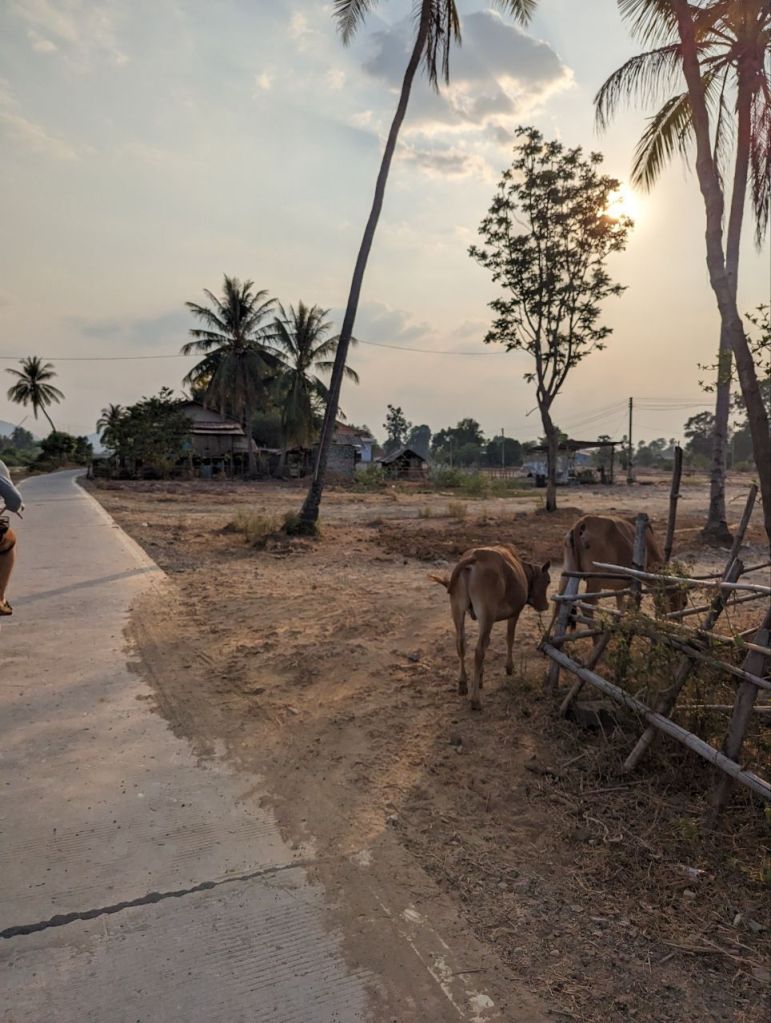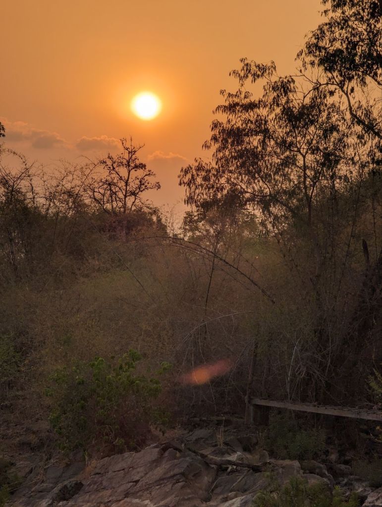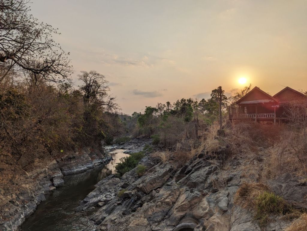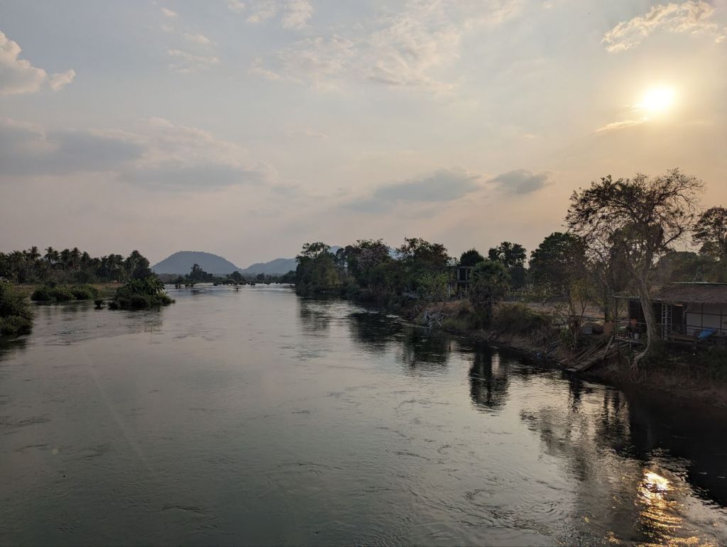 Bis Nachmittag wird gechillt. Dann leihen wir uns noch mal Fahrräder und wollen zum anderen Wasserfall auf Don Khon. Die Lichtstimmung zum Sonnenuntergang ist toll.
