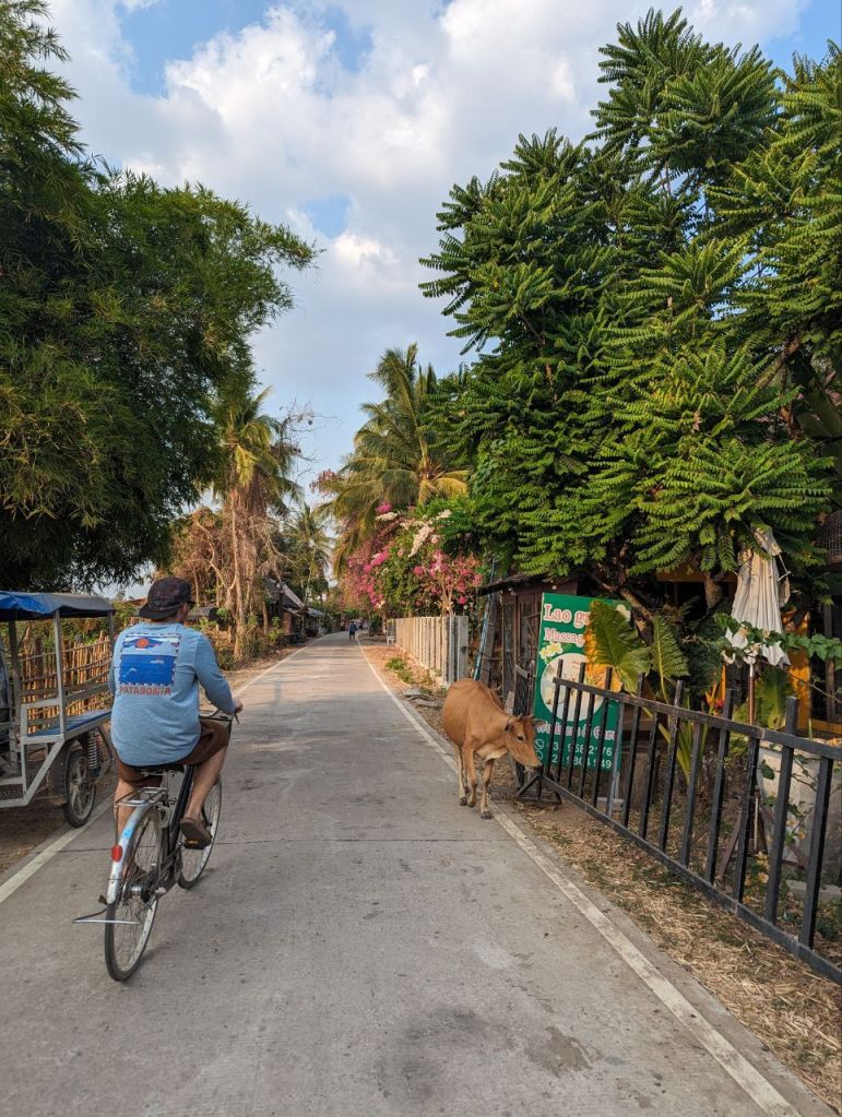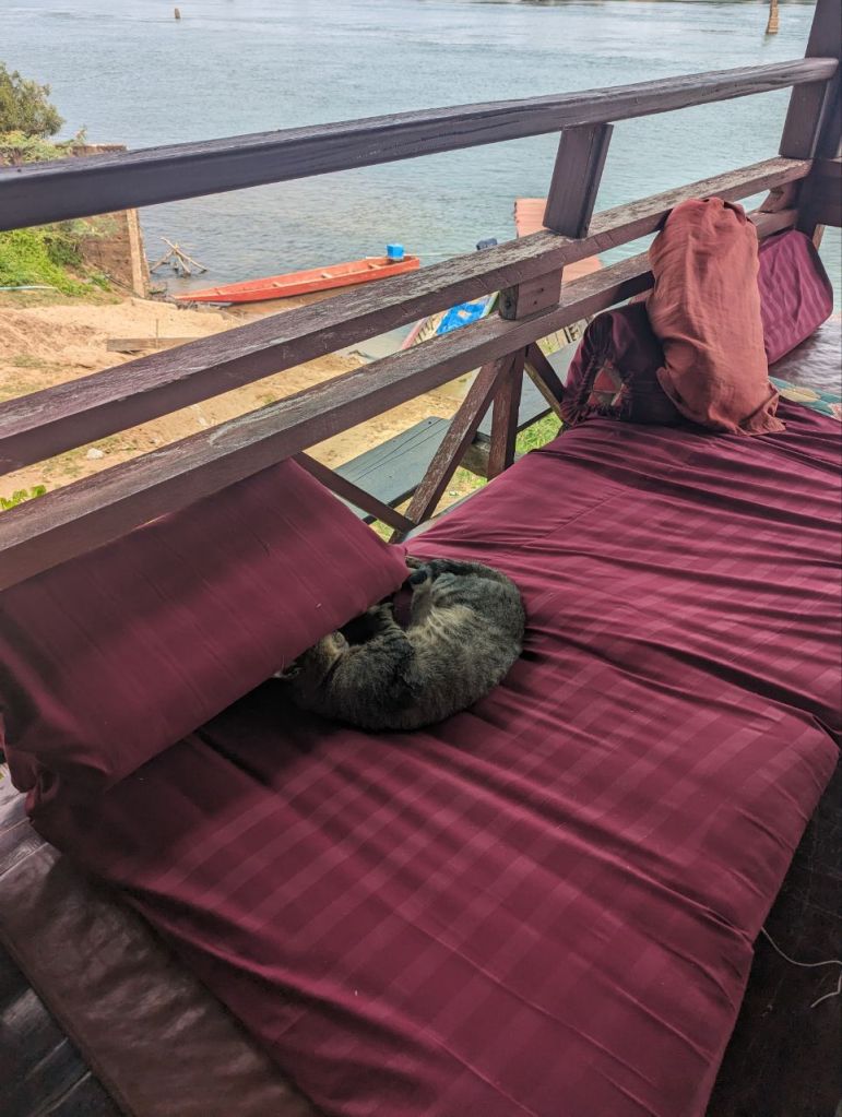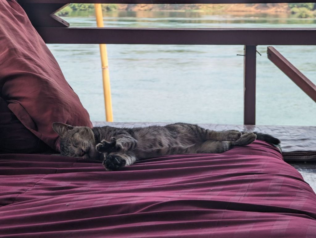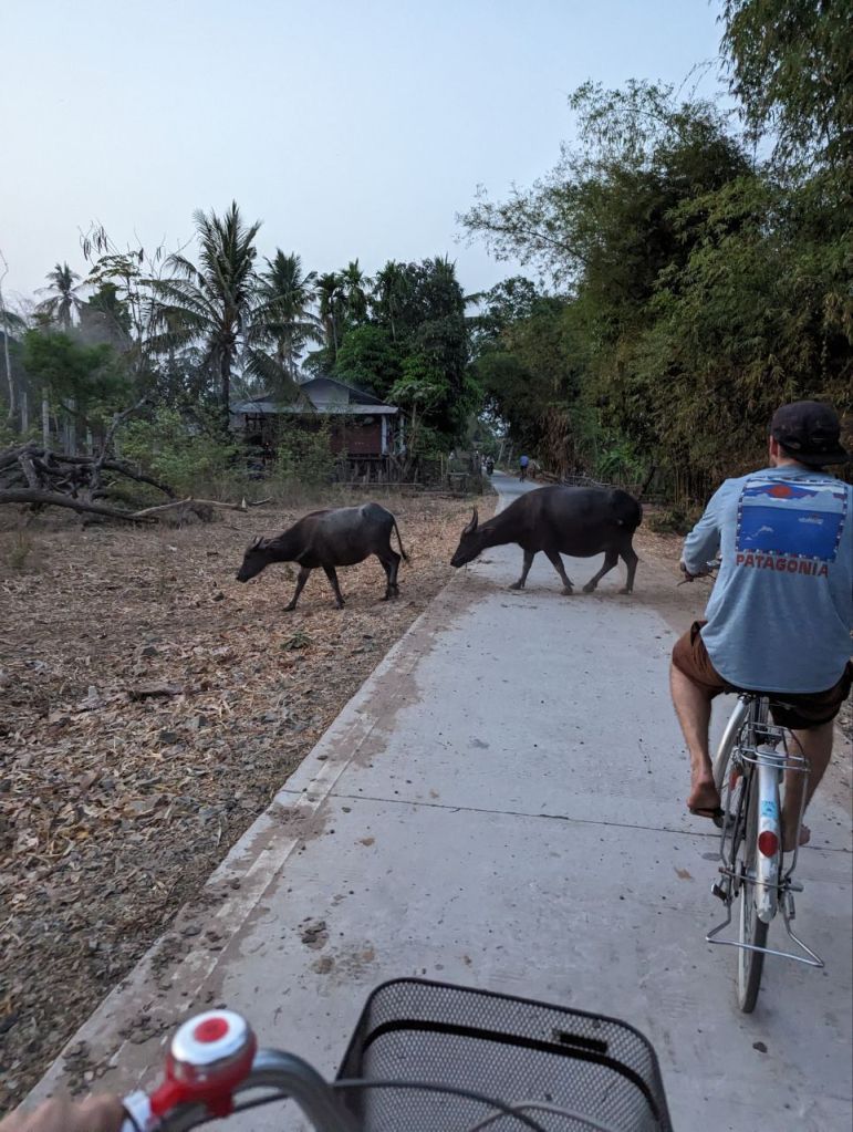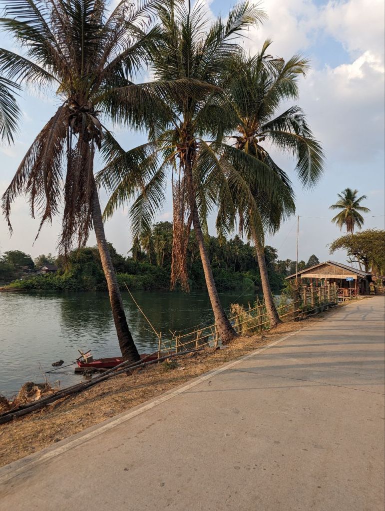 Bis Nachmittag wird gechillt. Dann leihen wir uns noch mal Fahrräder und wollen zum anderen Wasserfall auf Don Khon. Die Lichtstimmung zum Sonnenuntergang ist toll.