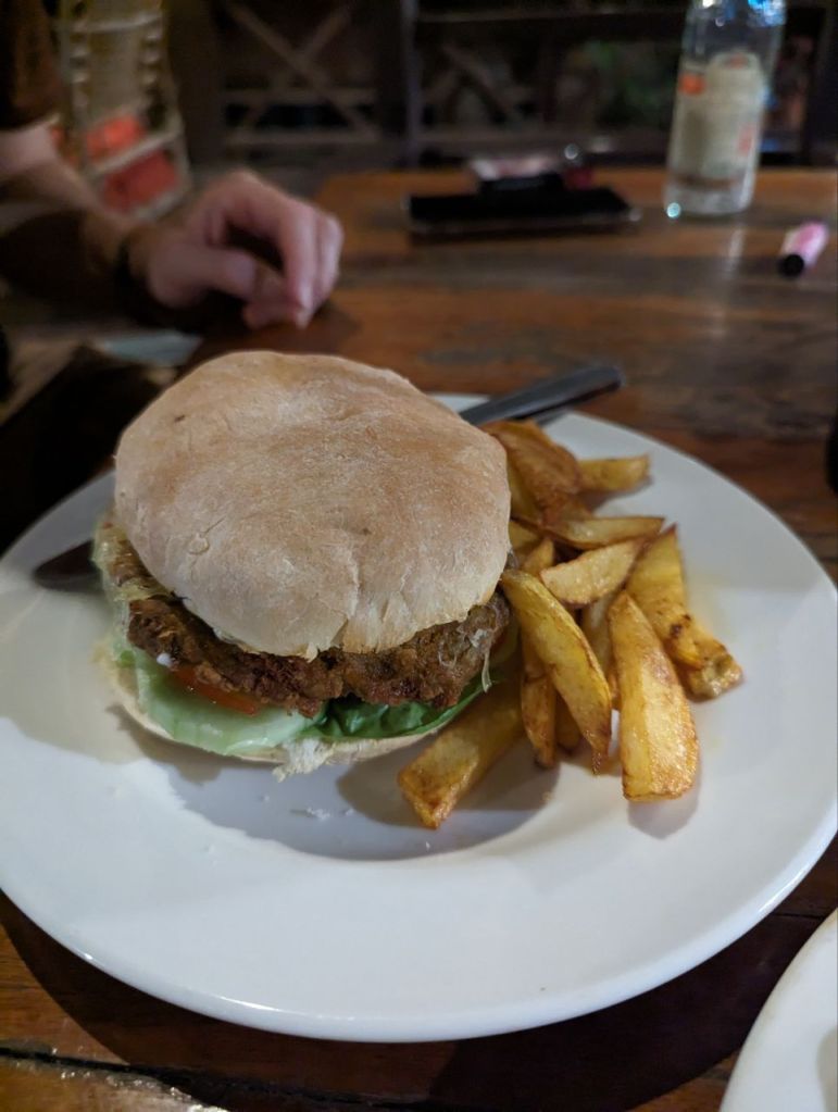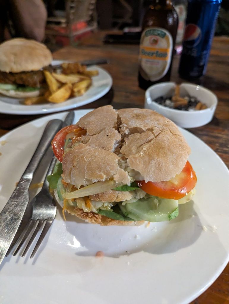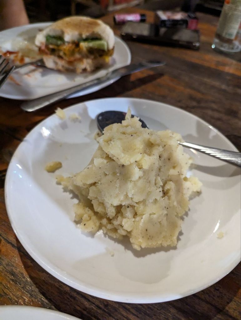 Zum Tagesabschluss warten wir noch 1,5 Stunden auf Pumpkin Burger, Club Sandwich und Mashed Potatoes.