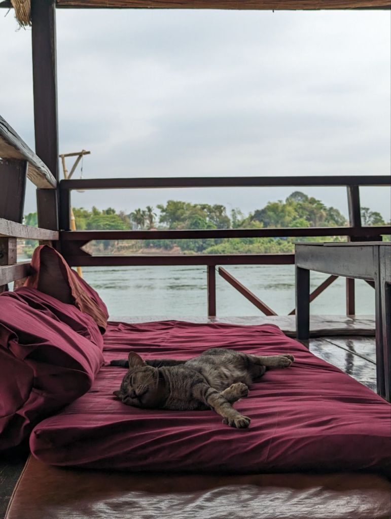 Gegen 15 Uhr sind wir in Pakse. Dann heißt es noch schwitzend 700 m um die Ecke laufen.