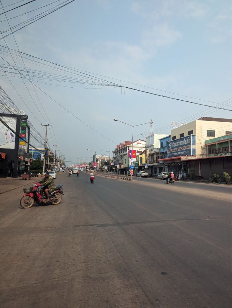 Gegen 16:30 Uhr sind wir da. Erstaunlicherweise reisen wir ohne Kosten aus Laos aus (Vang Tao Border).