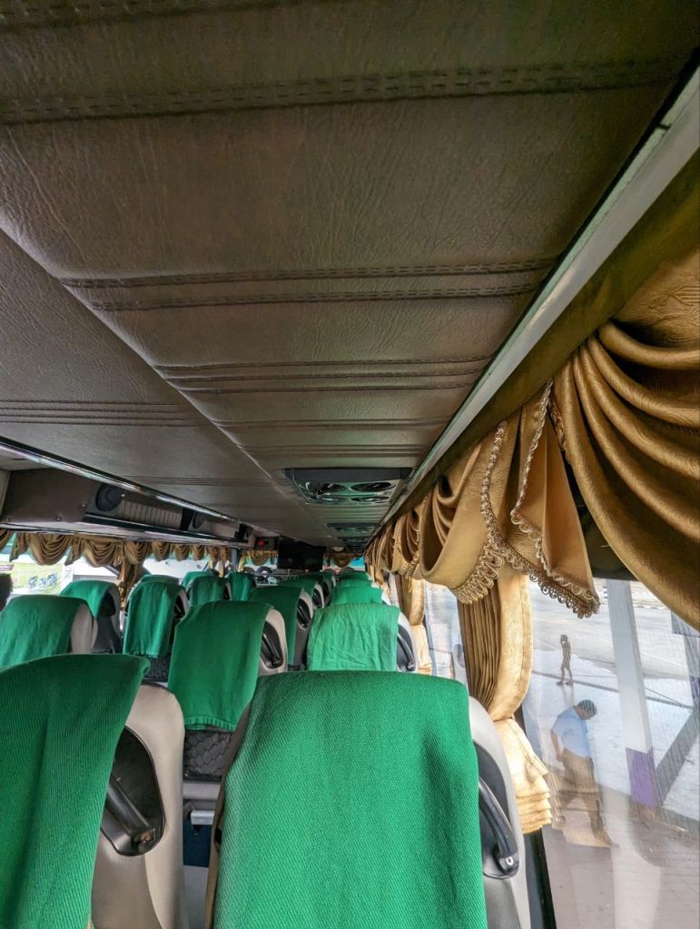 Erst ist die Fahrt recht bequem, doch schnell wird es sehr kalt. Wir schätzen ca. 15 Grad. Auf in eine unbequeme, frierende Nacht.