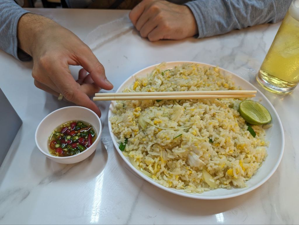 Abends knurrt der Magen nochmal, darum gehen wir Essen suchen. Das Meiste ist schon geschlossen. Nach elendig langer Suche bekommen wir Fried Egg Rice und Bier für wenig Geld. Vegetarisches Essen gibt’s hier nicht so viel.