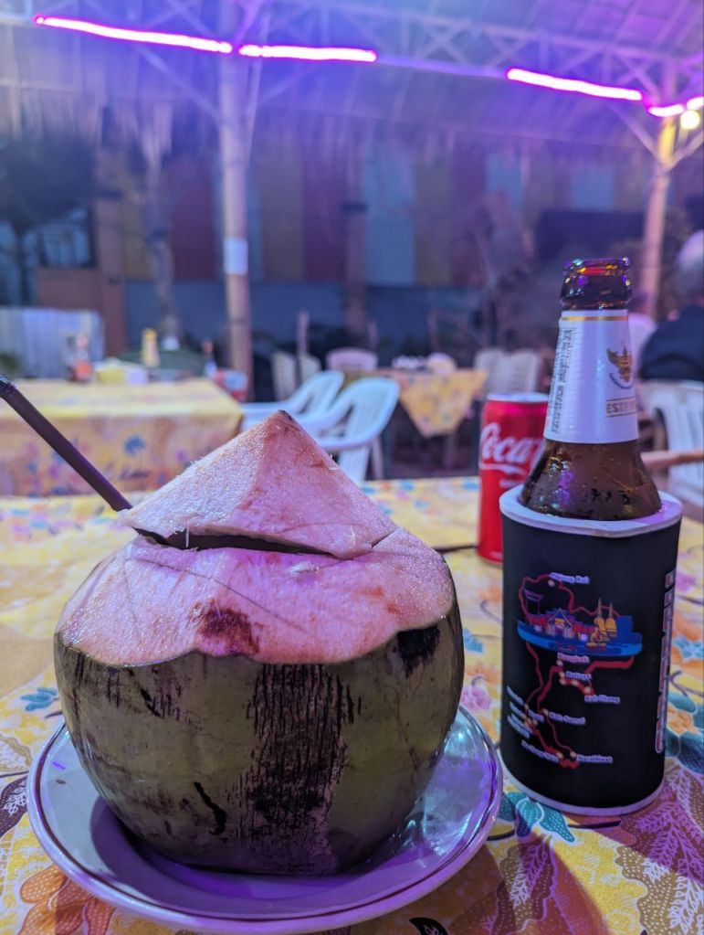 Die Quallen waren gestern noch nicht da. Dafür gibt’s an der Bar ein Bier. (Bilder gibt’s leider keine, weil kein Handy dabei)